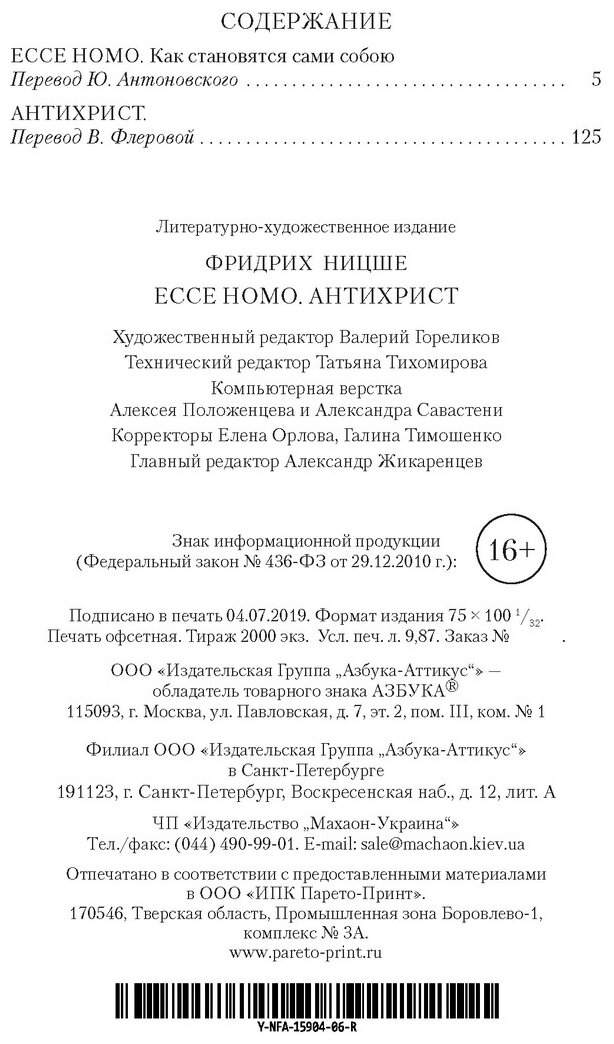Книга: Ecce Homo. Антихрист (Ницше Фридрих Вильгельм); Азбука Издательство, 2015