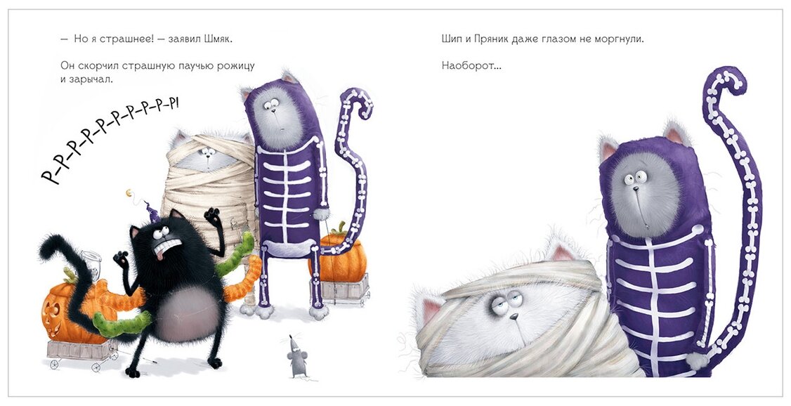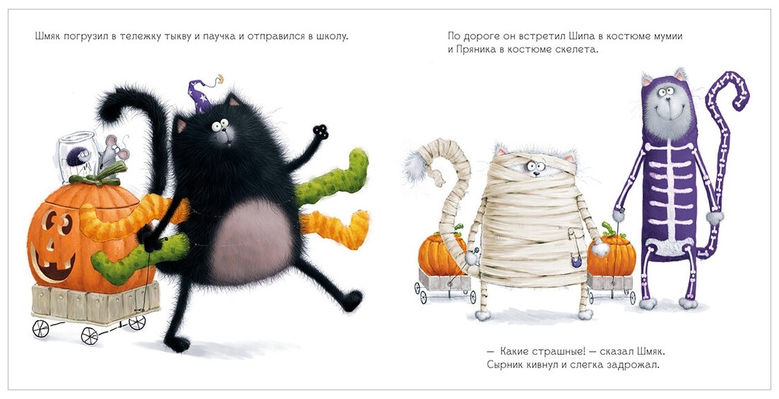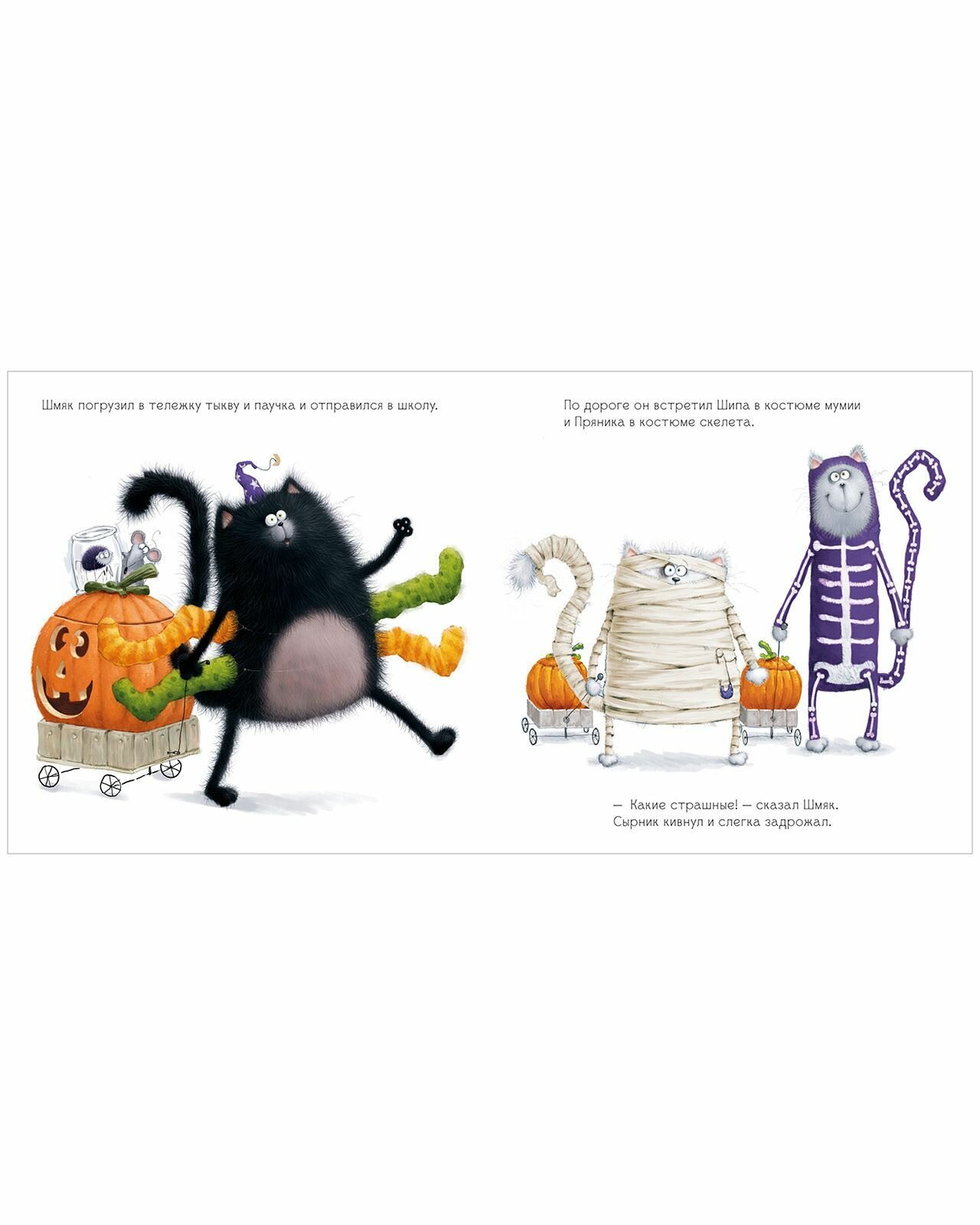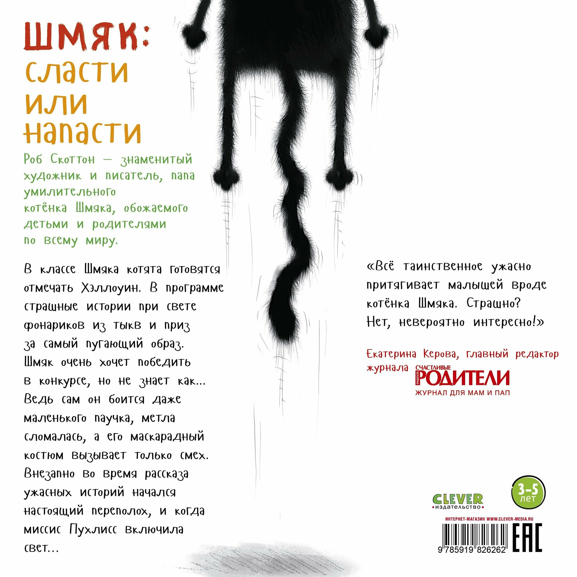 Очередная новинка о любимом котенке, который вместе со своими друзьями готовится отмечать Хэллоуин. В программе страшные истории при свете фонариков из тыкв и приз за самый пугающий образ. Шмяк очень хочет победить в конкурсе, но не знает как... Ведь сам он боится даже маленького паучка, метла сломалась, а его маскарадный костюм вызывает только смех. Внезапно во время рассказа ужасных историй начался настоящий переполох, и когда миссис Пухлисс включила свет… Новая книга «Шмяк: сласти или напасти» станет веселым приключением для детей. Вы можете читать новинку вместе с детьми, или предложить ребенку почитать книгу самостоятельно – веселые картинки и простой слог подойдут для первого чтения как нельзя лучше! Мировой бестселлер детской литературы впервые издается на русском языке! Невероятные приключения котенка Шмяка, который давно известен нам из интернета, интересные иллюстрации и незабываемые герои сделают эту книгу самой любимой! Соберите все поучительные истории о незабываемом персонаже – котенке Шмяке.