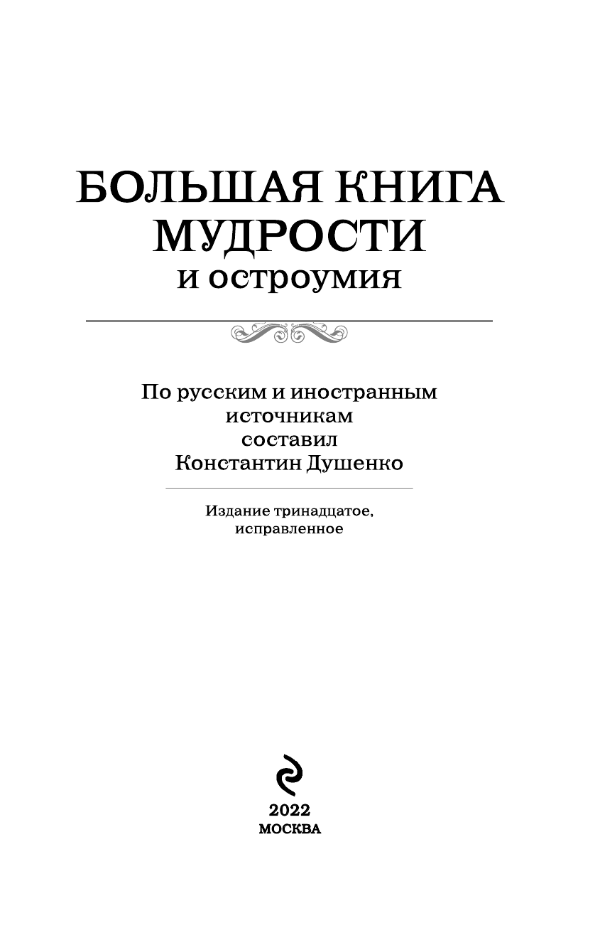 Большая книга мудрости и остроумия. От царя Соломона до Альберта Эйнштейна (Душенко Константин Васильевич (составитель)); Эксмо, 2015