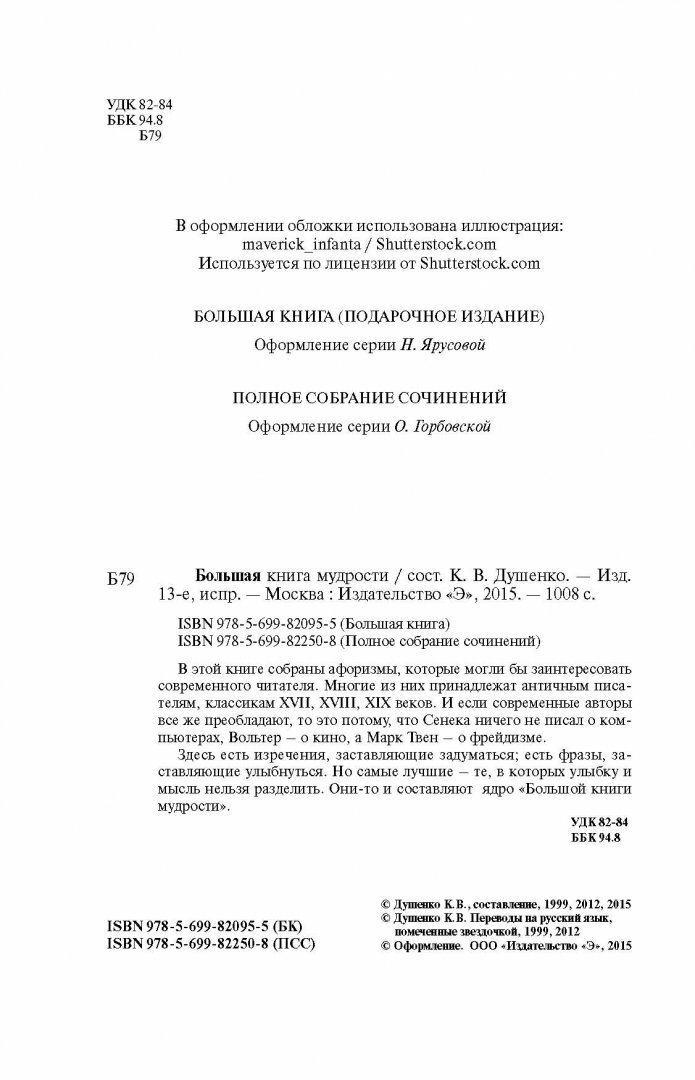 Сервис сравнения цен СкидкаГИД предлагает сравнить цены на товар «Книга: Большая книга мудрости и остроумия. От царя Соломона до Альберта Эйнштейна (Душенко Константин Васильевич (составитель)); Эксмо, 2015»