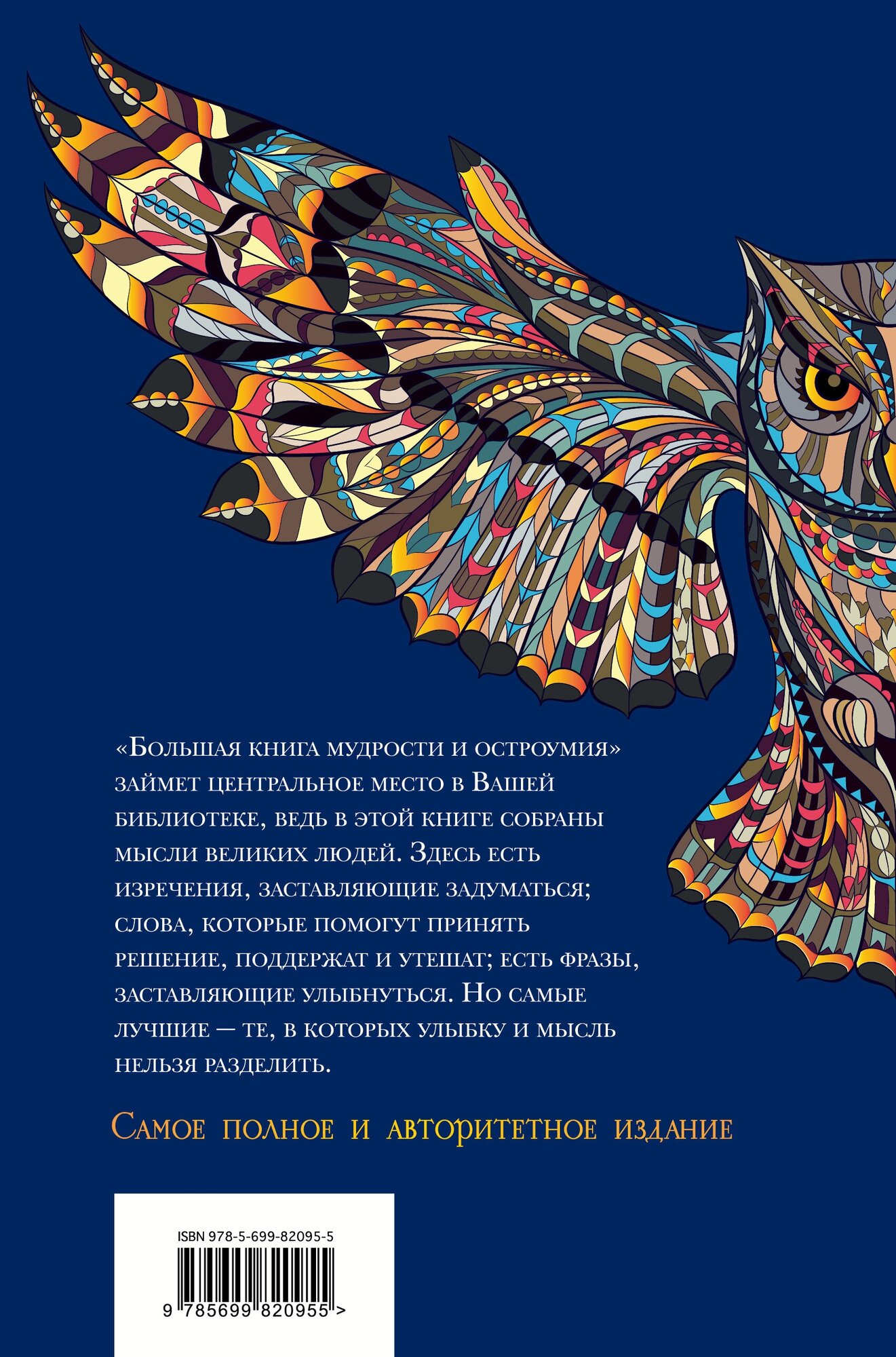 Здесь есть изречения, заставляющие задуматься; есть фразы, заставляющие улыбнуться. Но самые лучшие - те, в которых улыбку и мысль нельзя разделить. Они-то и составляют ядро "Большой книги мудрости и остроумия".