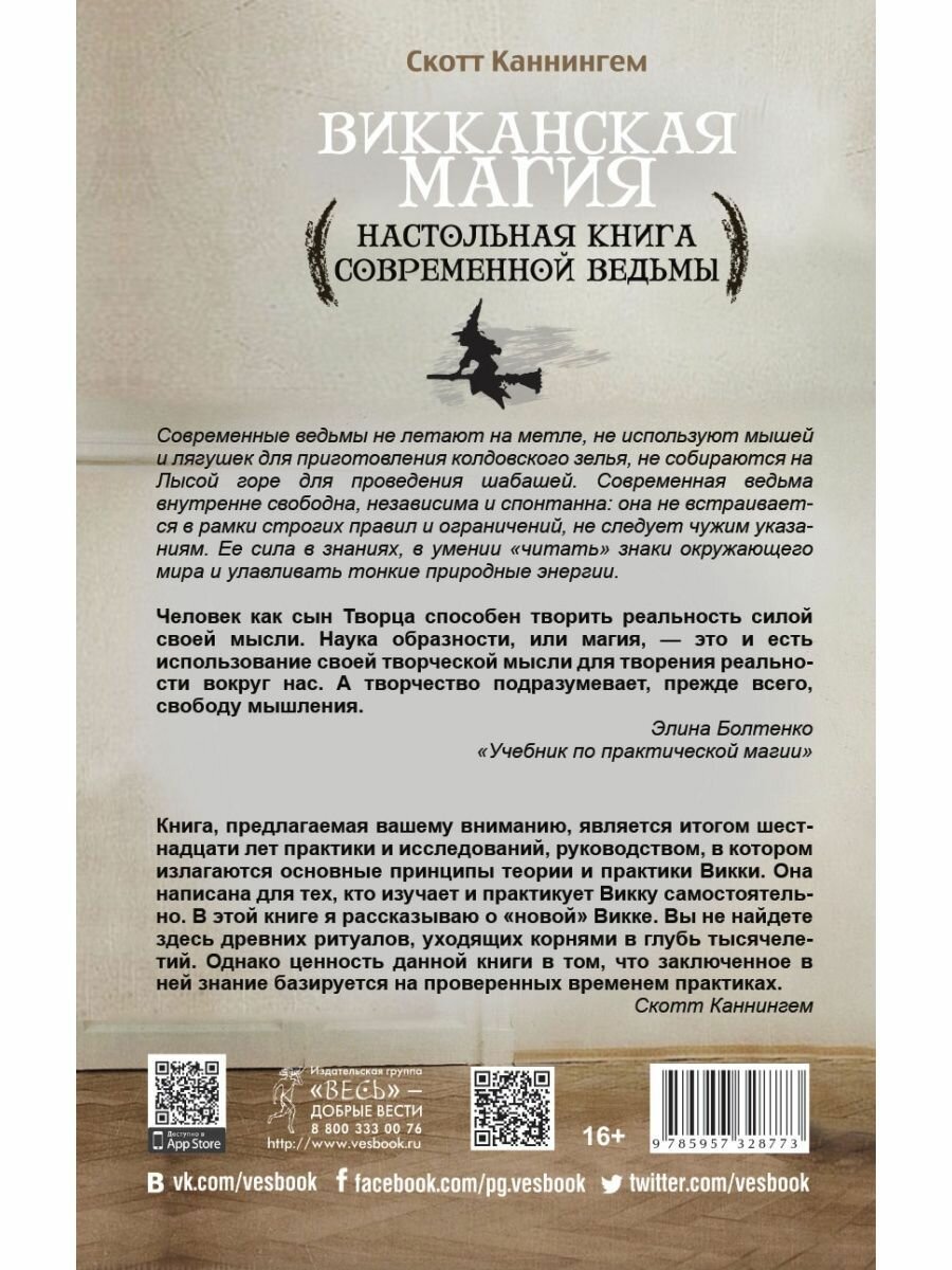Имя Скотта Каннингема широко известно в кругах приверженцев Викки во всем мире. По его трудам о Природной магии обучались многие представители современных виккан. Одна из самых популярных его книг «Викканская магия. Настольная книга современной ведьмы» — прекрасное пособие для тех, кто решил самостоятельно изучать магию, чтобы создать свой собственный индивидуальный стиль работы. Здесь вы найдете все, что нужно знать начинающей ведьме о «ремесле»: ознакомитесь с основными принципами викканства, раскроете секреты магических техник, научитесь работать с магическими инструментами и создавать собственные ритуалы и заклинания.