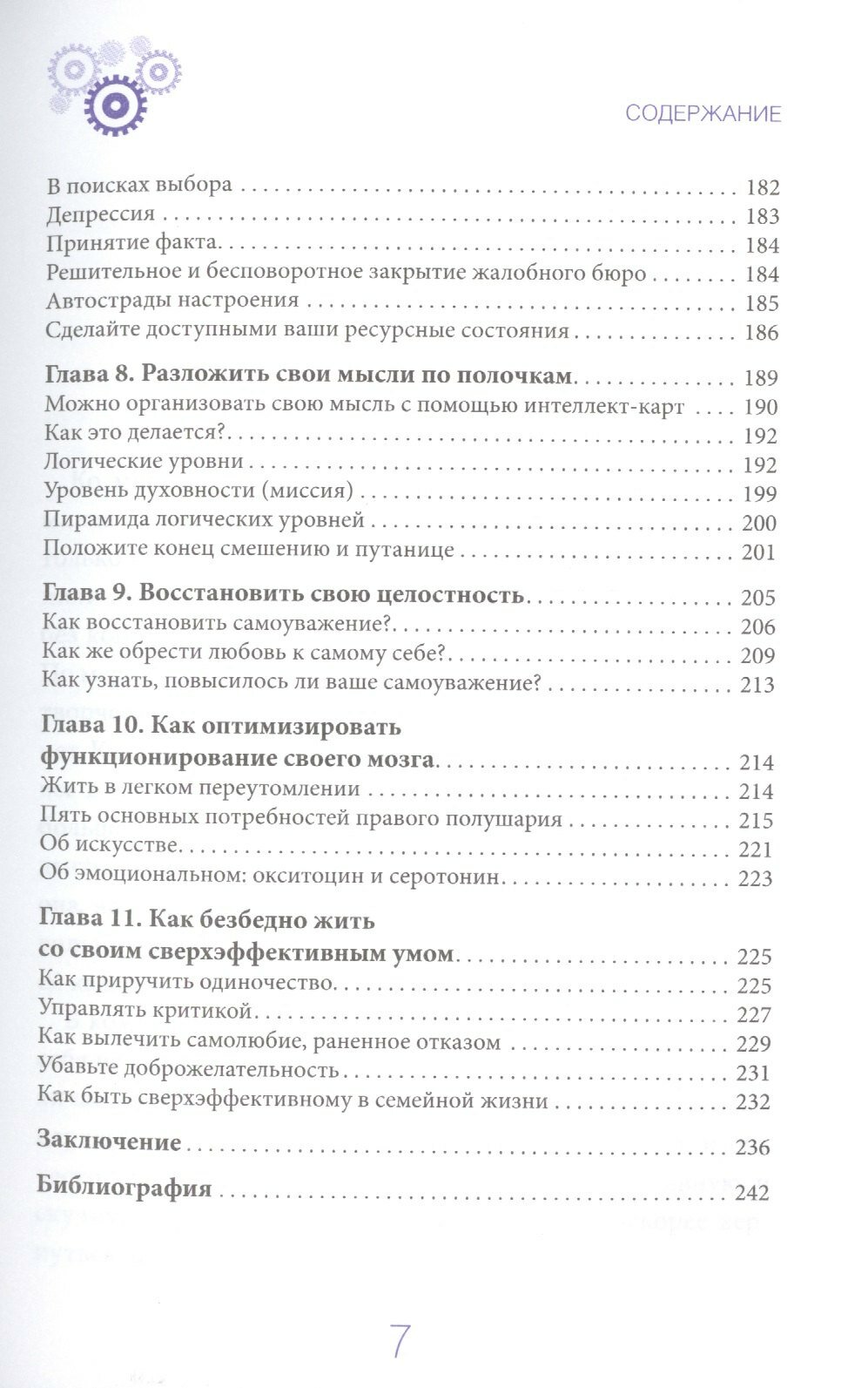 Эта книга для тех, кто страдает от сверхэффективности и не знает, как «разгрузить» свой ум и эмоции. Также она будет полезна психологам, социологам и тренерам по личному развитию. А тем, кто интересуется практической психологии и методами повышения интеллекта, она даст много новой полезной информации и позволит улучшить свои умственные способности.