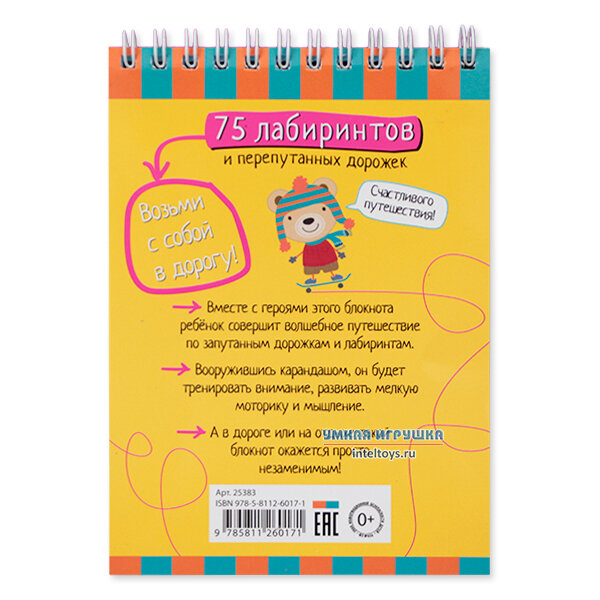 Вместе с героями этого блокнота ребёнок совершит волшебное путешествие по запутанным дорожкам и лабиринтам. Вооружившись карандашом, он будет тренировать внимание, развивать мелкую моторику и мышление. А в дороге или на отдыхе такой блокнот окажется просто незаменимым!