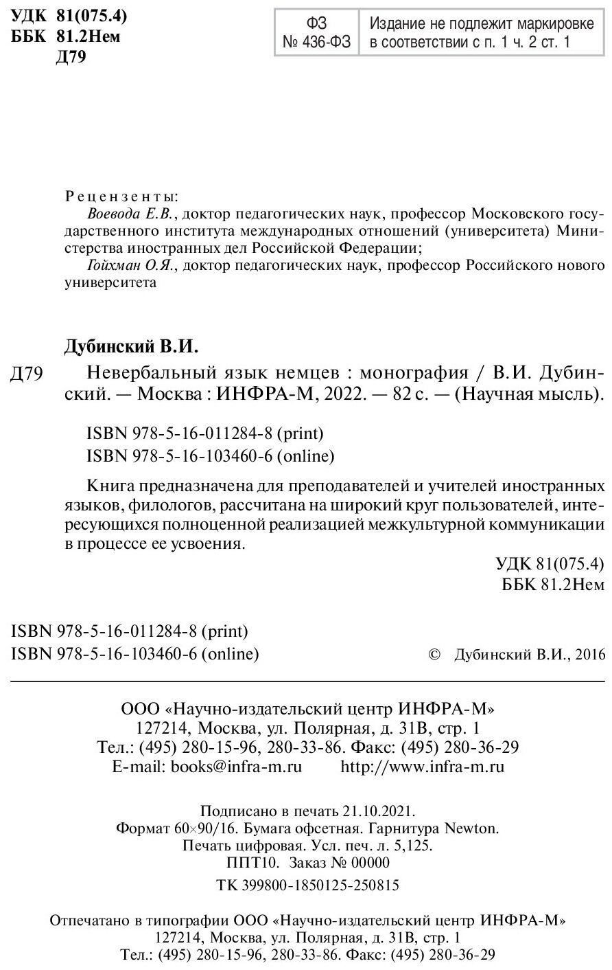 Книга: Невербальный язык немцев (Владимир Ильич Дубинский); ИНФРА-М, 2023
