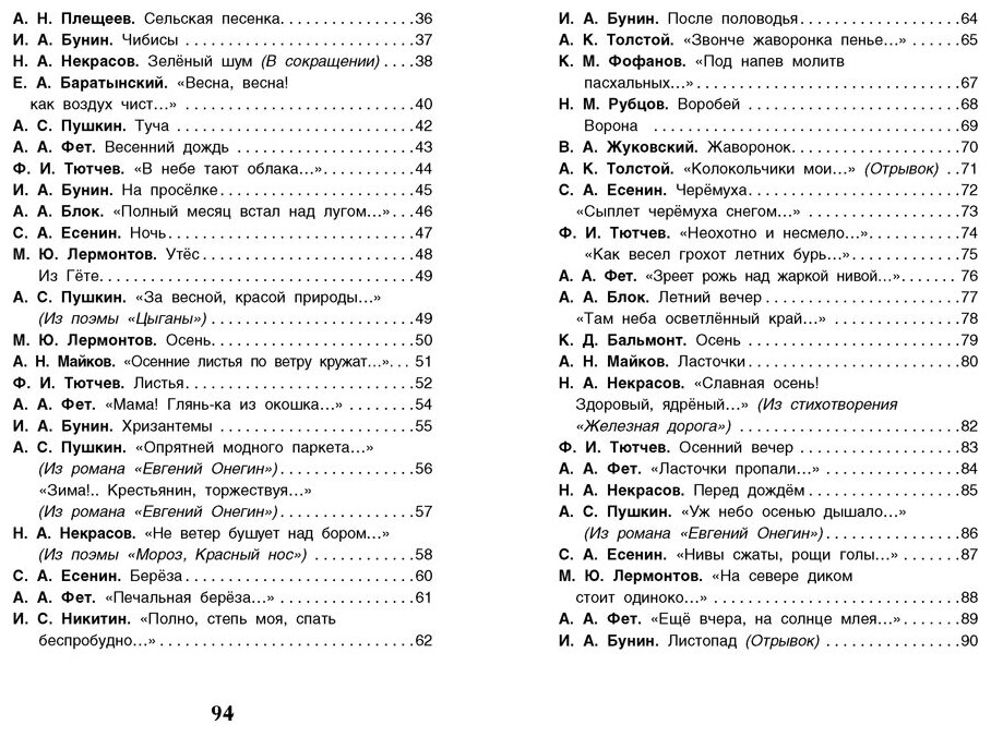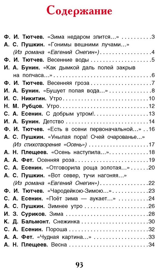 Очень даже неплохой сборник стихотворений русских классиков, рекомендую. Купила для себя и на будущее маленькому сыну (с пелёнок приучаю к хорошей литературе и очень надеюсь, в школах лет через пять ещё будут изучать русскую поэзию). Качество книг этой серии мне нравится, удобный формат, шрифт средний, иллюстрации хоть и небольшие, но красочные и очень точные, подобраны в тему. Содержание книги - это, пожалуй, единственный минус. Все стихи напечатаны вперемешку, затруднён поиск по содержанию нужного произведения. На мой взгляд, составители могли бы более удачно проработать и структурировать сборник-стихи разбить либо по авторам, либо по временам года, либо в соответствии с школьной программой.