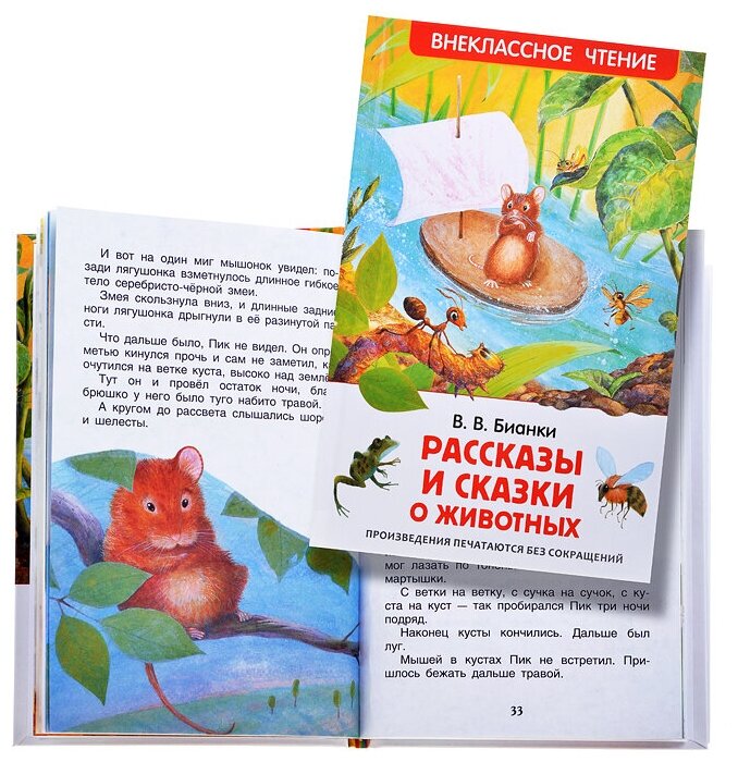 Купила книгу Бианки "рассказы и сказки о животных" по акции для своего четырехлетнего сына. Вначале переживала, что он еще мал для таких рассказов. Книга рекомендуется для детей школьного возраста. Но сынок с большим удовольствием слушает сказки , больше всего полюбился "мышонок Пик" и "Сказка как муравьишка домой спешил". Чудесная книга, удобный небольшой формат, плотные странички, очень лёгкая , не объемная, практично взять с собой в дорогу. Рассказы Бианки очень поучительные и познавательные. Читаем и перечитываем, эта книга стала одной из любимых в нашей детской библиотеке. Советую. Покупкой довольны.