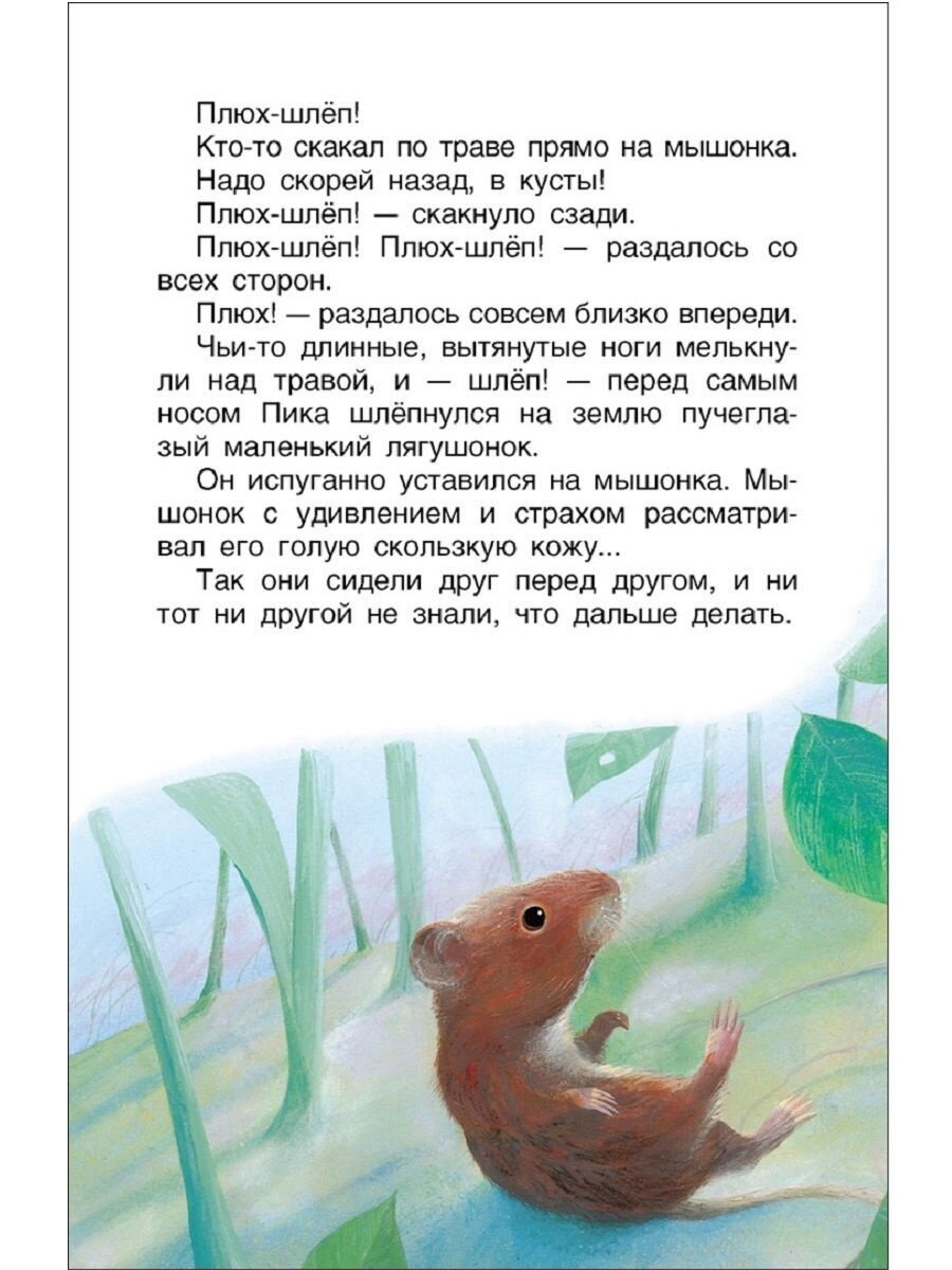 Купила эту небольшую книжечку, чтобы посмотреть как дети воспримут рассказы про животных. Основной рассказ здесь «Мышонок Пик», остальные очень маленькие. Удобно взять книжку с собой, маленькая и легкая. Что порадовало, очень милые картинки и их очень много. Так что купили еще книжечки из этой серии, теперь читаем.