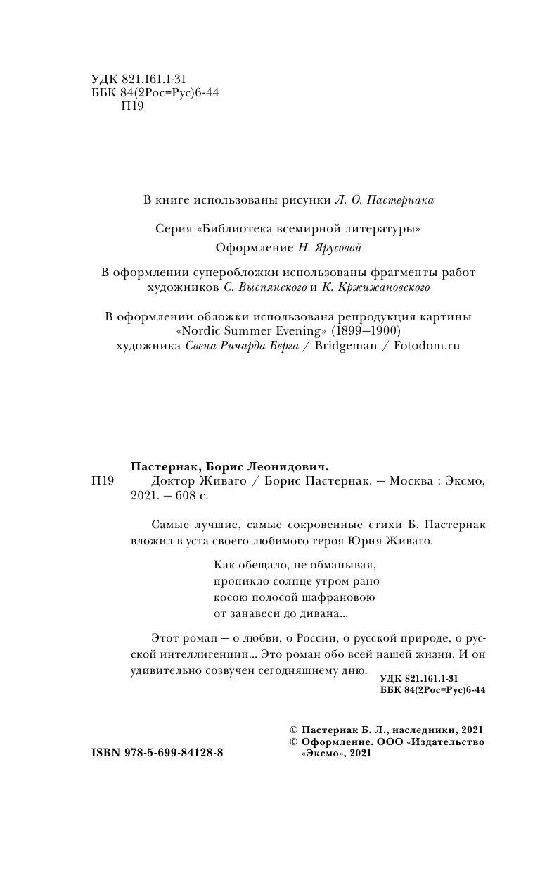 Книга: Доктор Живаго (Пастернак Борис Леонидович); ООО "Издательство "Эксмо", 2020