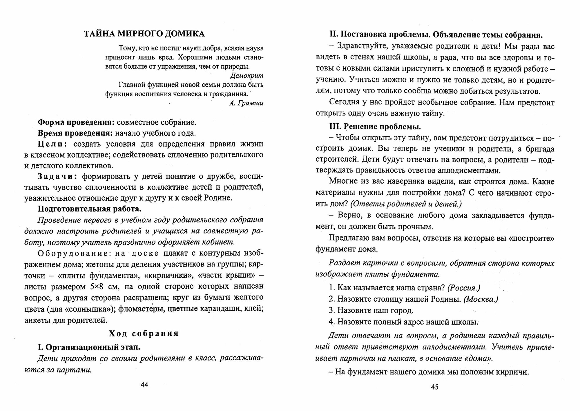 Пособие содержит сценарии родительских собраний - действенной формы активизации воспитательных возможностей родителей и решения образовательных задач в соответствии с положением федерального государственного образовательного стандарта. Предложены рекомендации по организации и содержанию деловых встреч педагогов и родителей, круглых столов и практикумов с участием специалистов коррекционной педагогики, которые помогут начинающим педагогам обрести уверенность в общении с родителями воспитанников, опытным воспитателям - разнообразить формы, методы и приемы ведения собраний, расширить грани родительско-педагогического взаимодействия во благо ребенка.