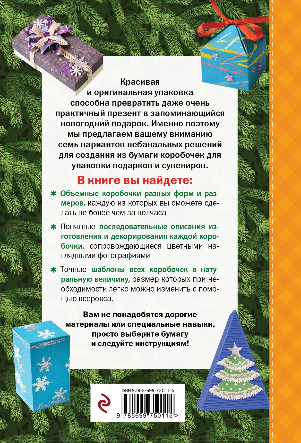 Представляем вниманию рукодельниц замечательный сборник идей для создания из бумаги своими руками нарядных коробочек для упаковки новогодних подарков. Все семь коробочек, которые вы найдете в книге, сопровождаются понятными пошаговыми описаниями, цветными фотографиями, а также шаблонами в натуральную величину. Все, что вам нужно, запастись бумагой и просто следовать инструкциям!