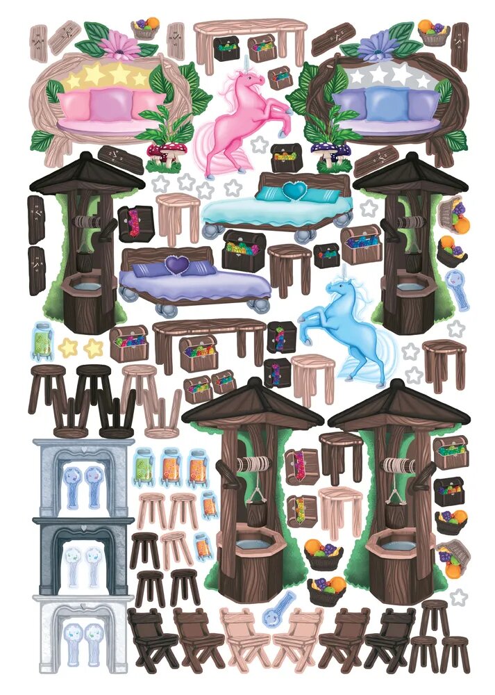 Книга для маленьких принцесс, которые обожают волшебство и сказочных фей. С помощью наклеек можно создать свой фантастический мир и украсить интерьер уютных домиков. Куда поставить стол и шкаф, как расставить флакончики с эликсирами на полке, где будет размещаться спальня маленькой феечки - множество вопросов, которые с радостью будут решены вашим ребёнком.