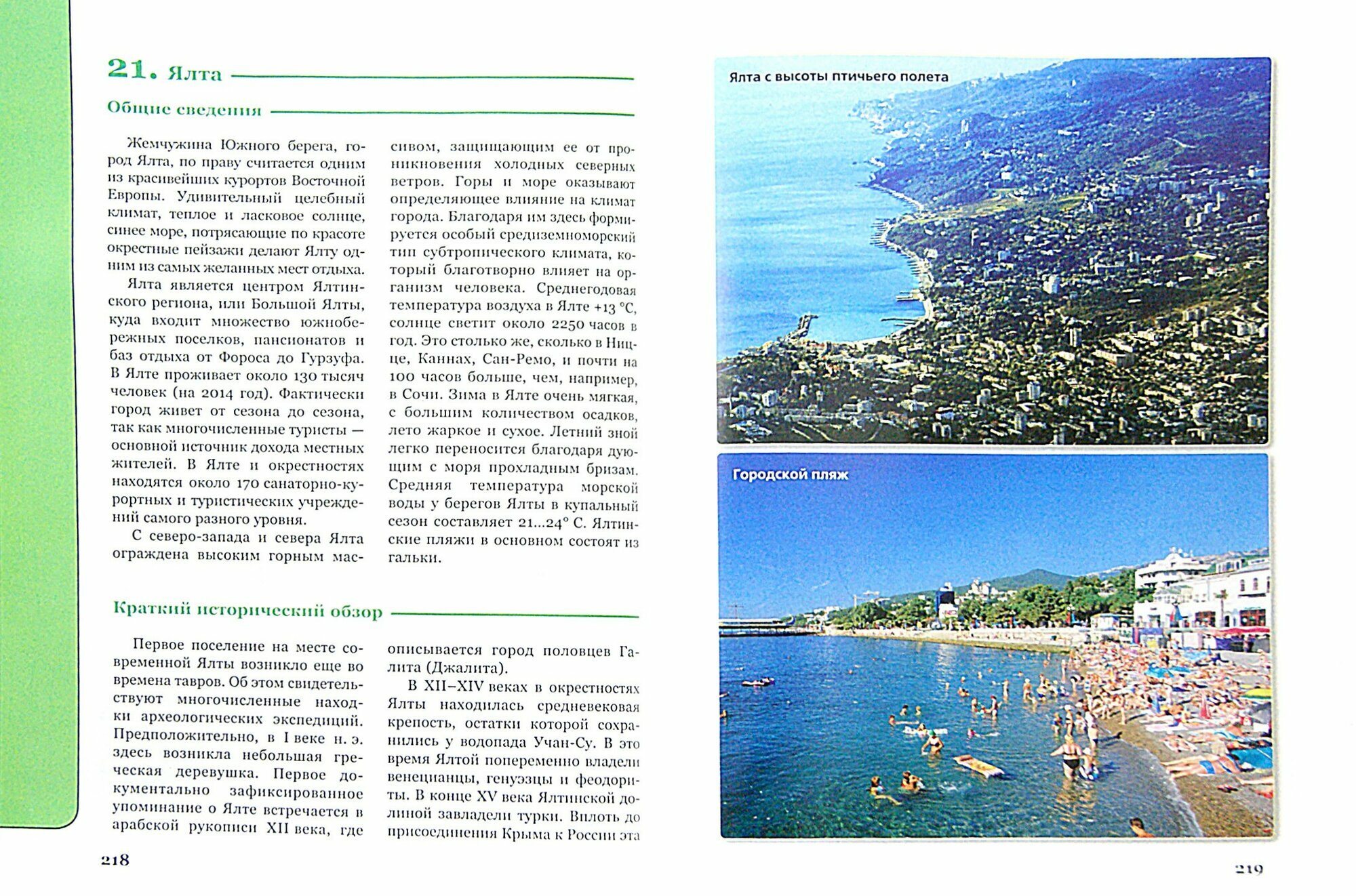 Путеводитель состоит из трех разделов. В первом разделе содержатся общие сведения о географическом положении, населении, климате, животном и растительном мире и туристических регионах Крымского полуострова. Второй раздел представляет собой краткий очерк истории Крыма. В третьем, основном, разделе дается подробное описание населенных пунктов полуострова и природных достопримечательностей Крыма. Расположение достопримечательных объектов, обозначенных цифрами от 1 до 43, показано на карте полуострова.