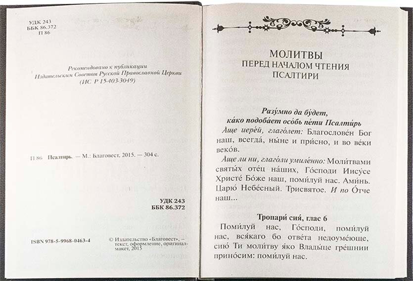 Псалтирь напечатан крупным шрифтом.