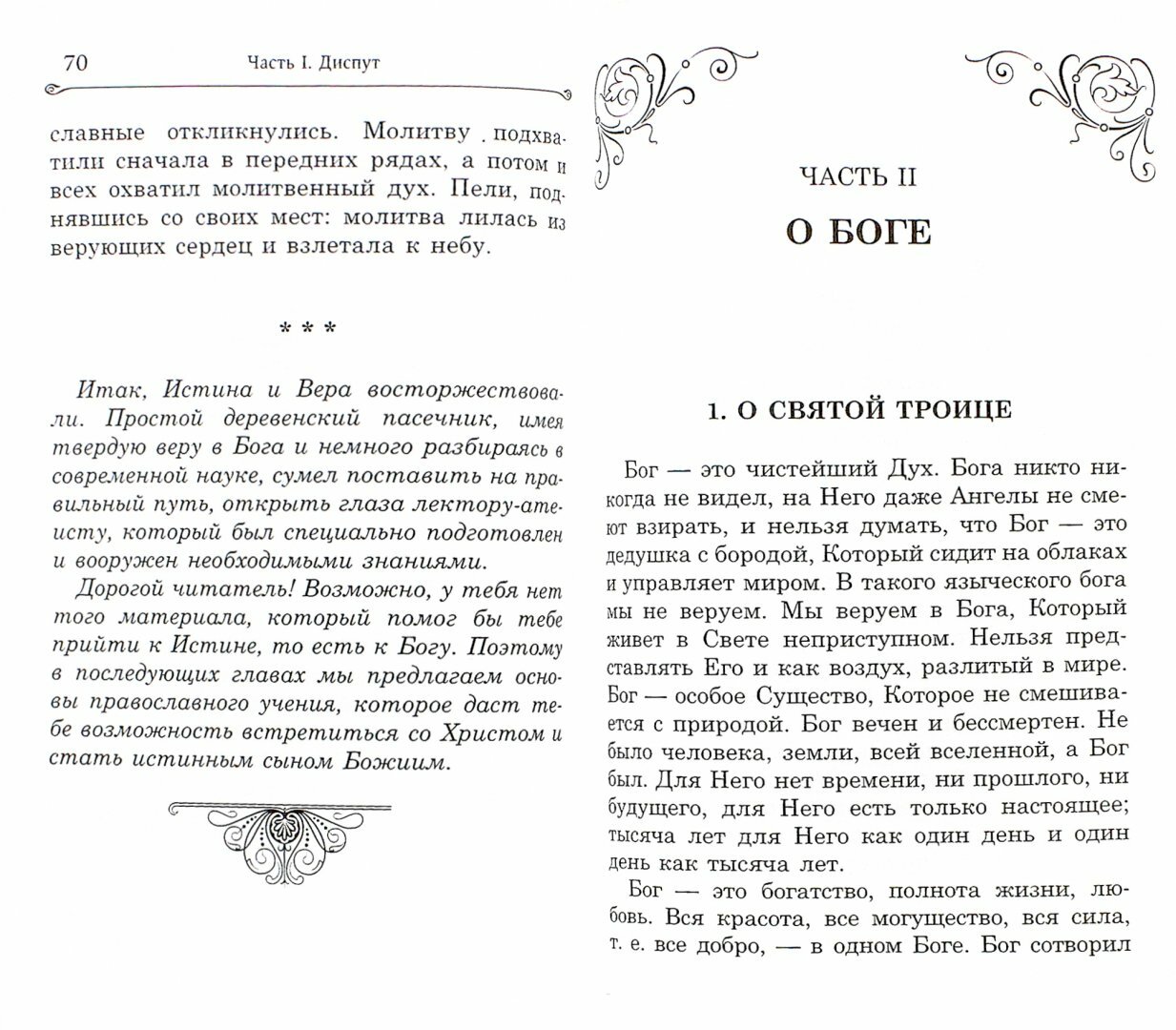 Книга «Яко с нами Бог» состоит из 3-х частей: 1-я часть «Диспут», 2-я часть «О Боге», 3-я часть — «Путь к спасению». 1-я часть — «Диспут») — построена на основе сочинения писателя-старообрядца Ф.Е. Мельникова «Откуда произошла вера в Бога (публичный диспут в советской России)», написанного в 1920 году.