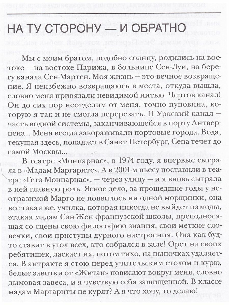 Самое интересное, что я узнала из воспоминаний – метод работы Клода Лелуша, основанный на чистой импровизации для актёров. Режиссёр не давал слов, артисты всё произносили от себя. Мог актёра настроить на одну сцену, а актрисе сказать совершенно другое – и снимал их реакцию. Сложно, но интересно.