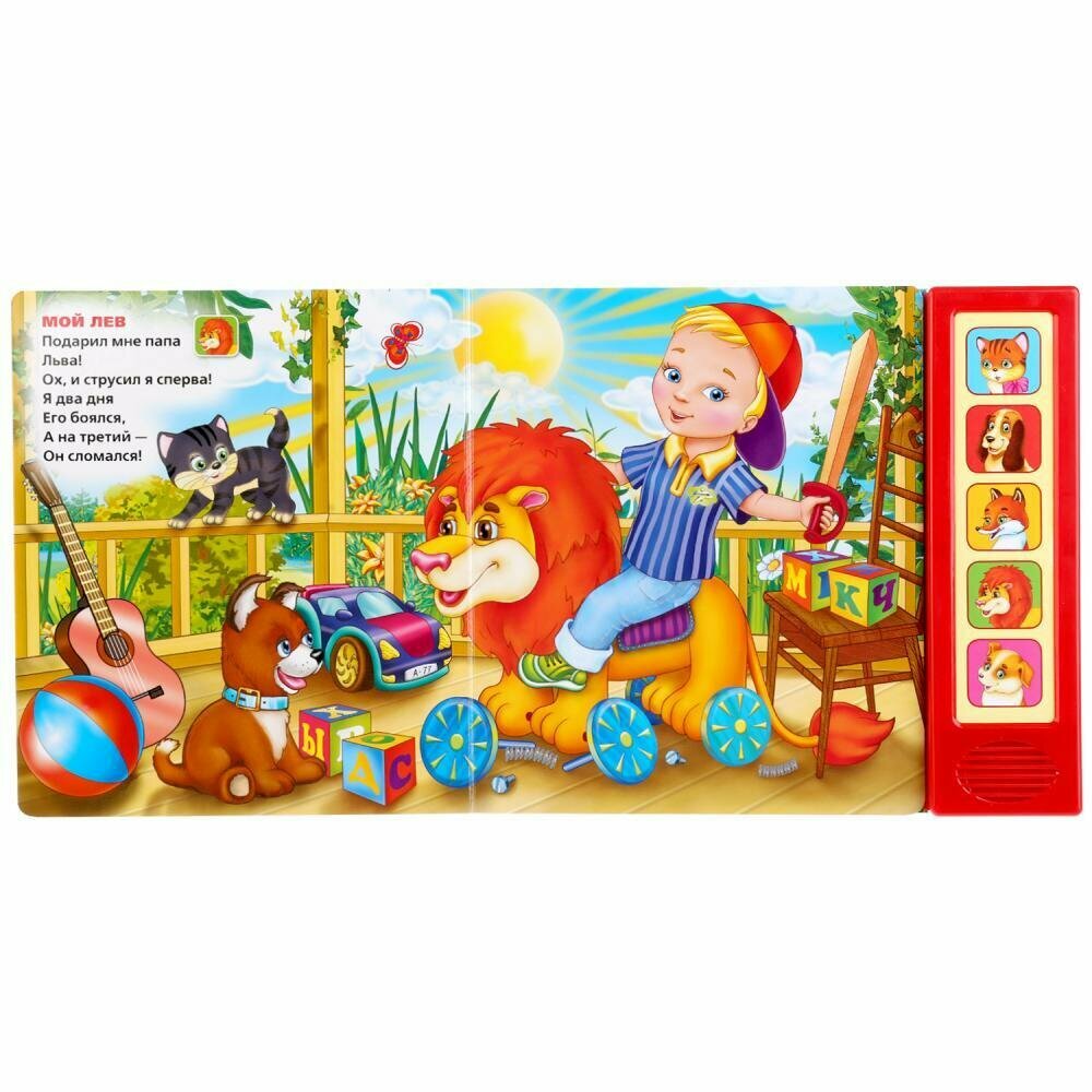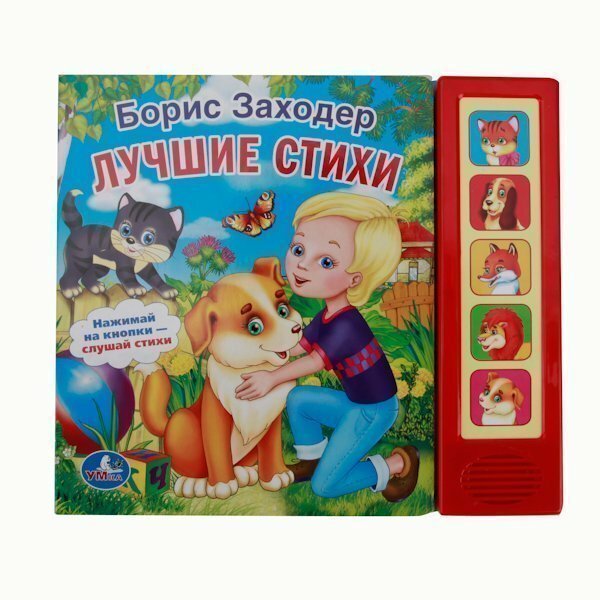 Замечательная книга "Лучшие стихи" понравиться малышу. В ней размещены 5 веселых стихов Б. Захордера: "Кискино горе", "Барбосы", "Лиса и крот", "Мой лев", "Мордочка, хвост и четыре ноги". Малыш с удовольствием будет ее слушать или читать. При этом рассматривать яркие, красочные странички с любимыми героями. Так же малыш при нажатии кнопок можно прослушать стихи под музыку. Ребёнок будет в восторге от такого подарка. Развивает память, воображение, фантазию, сенсорику.
