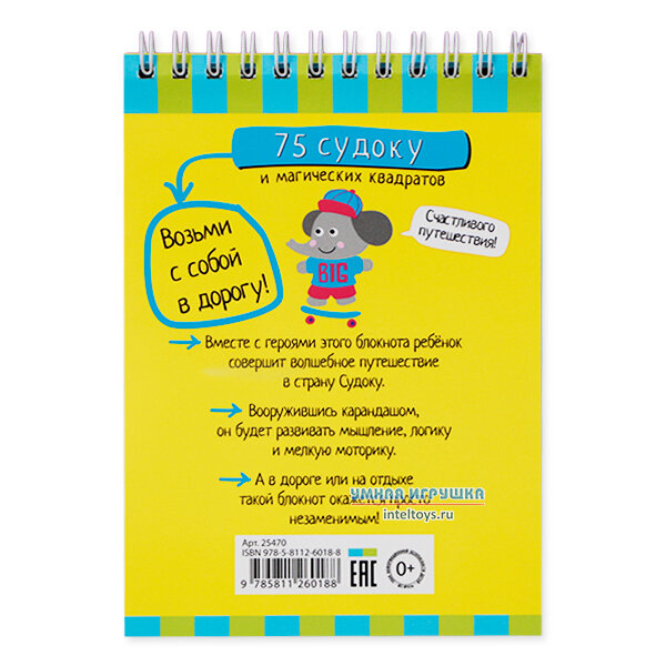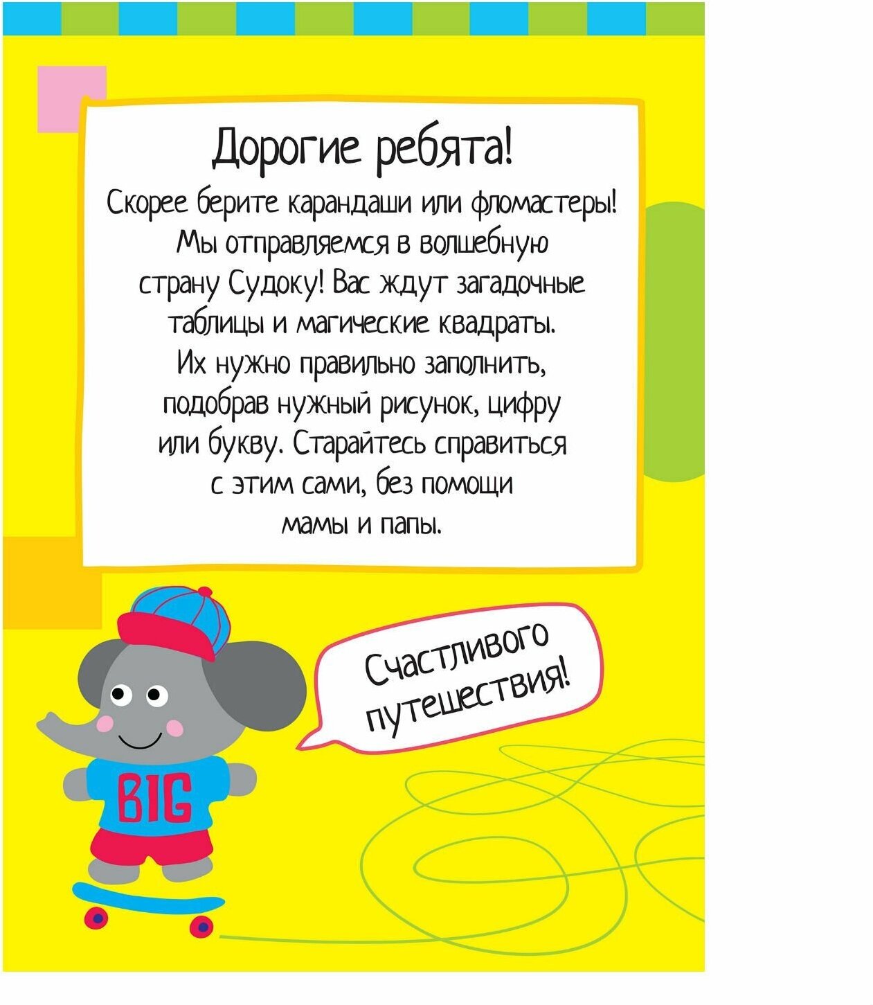 Открыв этот блокнот, ребёнок попадёт в волшебную страну Судоку. Вооружившись карандашом, он будет заполнять таблицы и магические квадраты и одновременно развивать мышление, логику и мелкую моторику. А в дороге или на отдыхе такой блокнот будет просто незаменим. Адресовано детям от 5 лет.