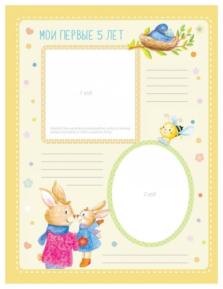 Брали два альбома: голубой для мальчика и розовый для девочки. После многочисленных вариантов остановились на этом. Поскольку вклеивать фотографий можно до 5 лет. Обложка приятная и мягкая. Листов для фото много в отличии от других вариантов альбомов. Представлена основная тематика фотографий, особенного первого года, но не так подробно, как хотелось бы и что предлагают другие издатели, например: нет тематики первого зубика, первой игрушки и т.п. Но вцелом альбомом довольны!