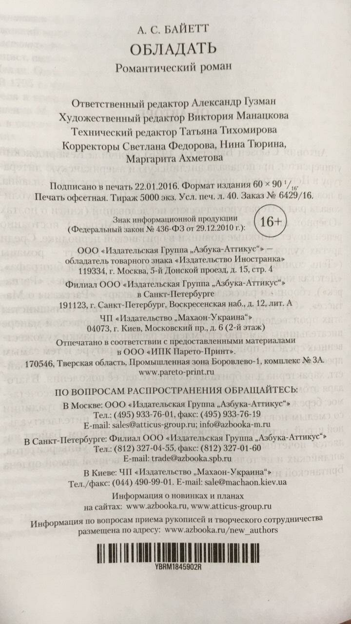 На сегодняшний день товар «Книга: Обладать (Байетт Антония Сьюзен); Иностранка, 2022» можно купить с кешбеком в 4 магазинах: book24, Буквоед, Читай-город, Onliner BY