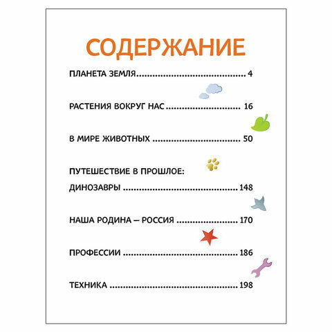 Книгу покупала, когда дочке не было еще трех лет. В книге нет энциклопедического текста с обьяснениями. Данный вид энциклопедии расчитан на самых маленьких. Энциклопедия визуального типа. В ней содержатся только фотографии с названием того, что изображено. Единственным рисованным разделом в энциклопедии явлется раздел "Динозавры". Все остальное - это реальное фотографическое изображение. Обложка толстая, глянцевая. Листы тоже гладкие, глянцевые. Фотографии яркие, красивые, четкие. Можно рассмотреть как подарочный вариант малышу. В энциклопедии 223 страницы. Довольно таки много тематических разделов. Ребенок в восторге.