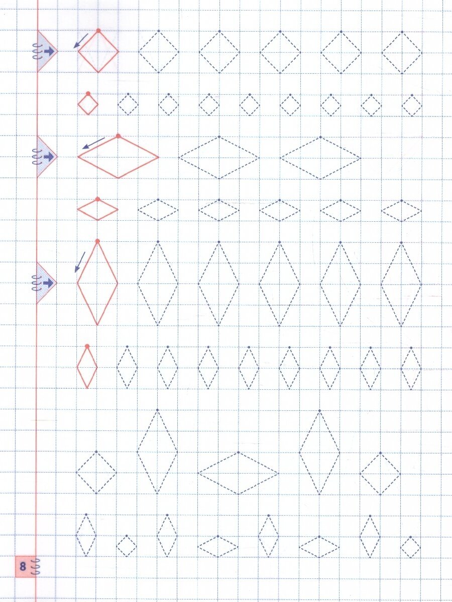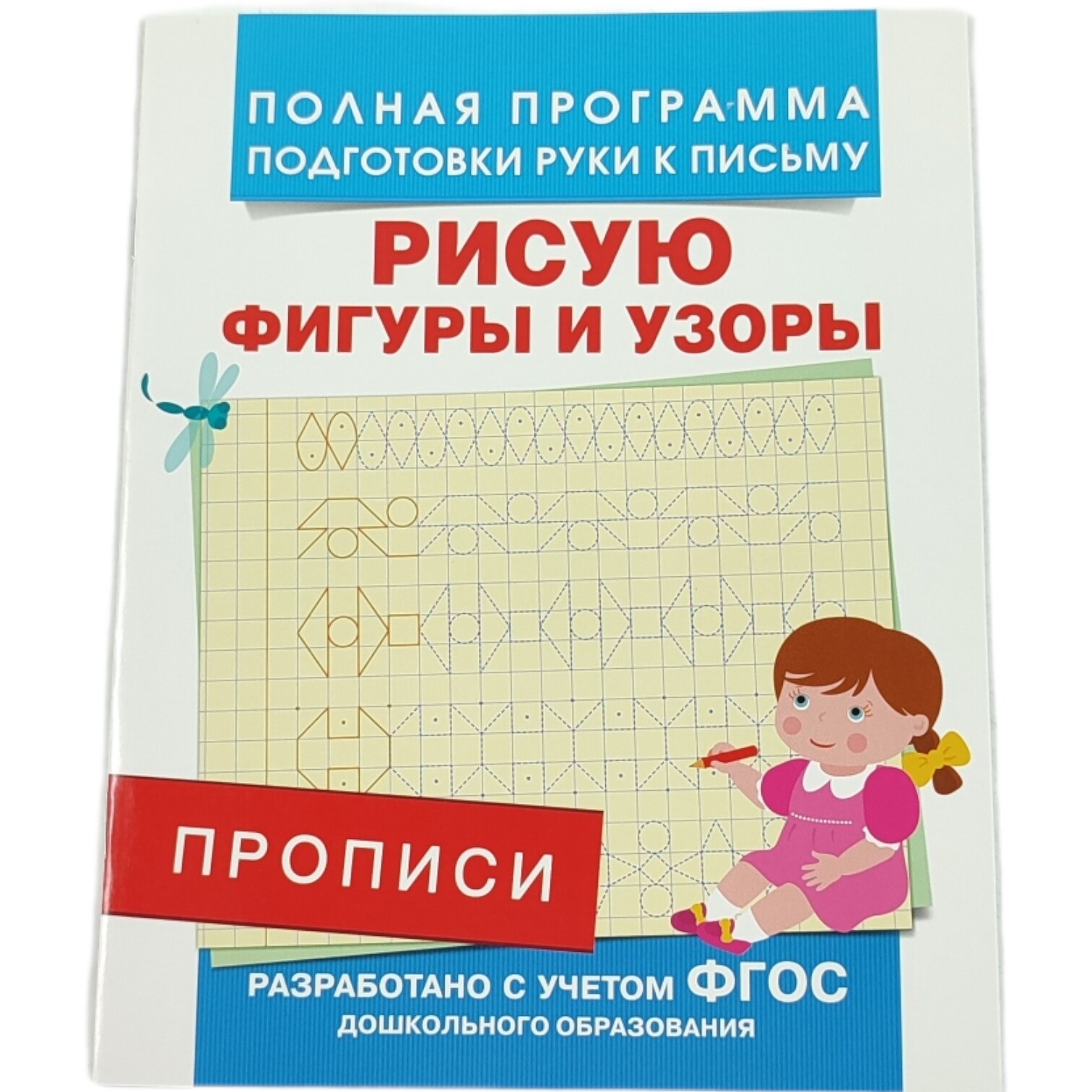 Прописи. Рисую фигуры и узоры. Серия прописей, которая поможет заниматься с ребенком. Небольшая книжечка с разнообразием и различием разных фигур и также по сложнее узоров. Красным цветом ребенку показывается как фигура и стрелочками правильность ее рисования, далее ребенок сам по точкам пишет данный узор или фигуру. Очень удобно и для самостоятельного занятия ребенка. Тетрадка разлинована по клеточкам, что очень удобно для дошкольников. Интересная и занимательная тетрадка, которая научит ребенка проводить линии и рисовать узоры и фигуры, развитие моторики рук ребенка и постановки руки к письму.