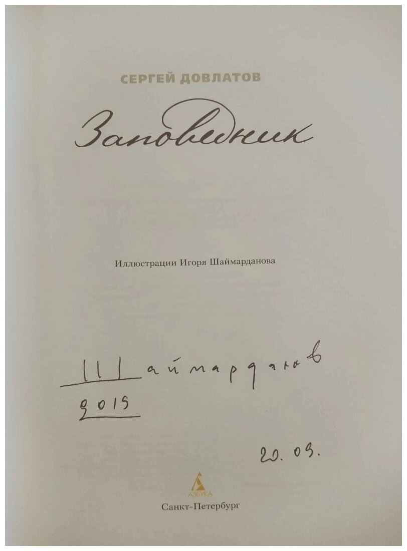 «Заповедник» (1983) одна из лучших книг Сергея Довлатова, в которой развивается его излюбленная тема лишнего человека. А фоном для нее становятся пейзажи Пушкинского заповедника, где автор, в числе других служителей музея, проводил экскурсии и рассказывал туристам о великом поэте. «Я хотел изобразить в Пушкинском заповеднике литературного человека, проблемы которого лежат в том же аспекте, что и у Пушкина: деньги, жена, творчество, государство. И дело отнюдь не в способностях героя... пишет Довлатов, а в самом заповеднике, который изображается наподобие мавзолея, в равнодушии и слепоте окружающих...» В настоящее издание включены иллюстрации, выполненные известным петербургским художником Игорем Шаймардановым.