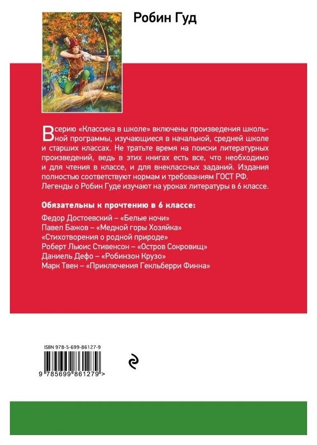 Перед Вами книга из серии& 171;Классика в школе& 187;, в которой собраны все произведения, изучаемые в начальной, средней школе и старших классах. Не тратьте время на поиски литературных произведений, ведь в этих книгах есть все, что необходимо прочесть по школьной программе: и для чтения в классе, и внеклассных заданий. Избавьте своего ребенка от длительных поисков и невыполненных уроков. Баллады о Робин Гуде изучаются на уроках литературы в 6 классе.