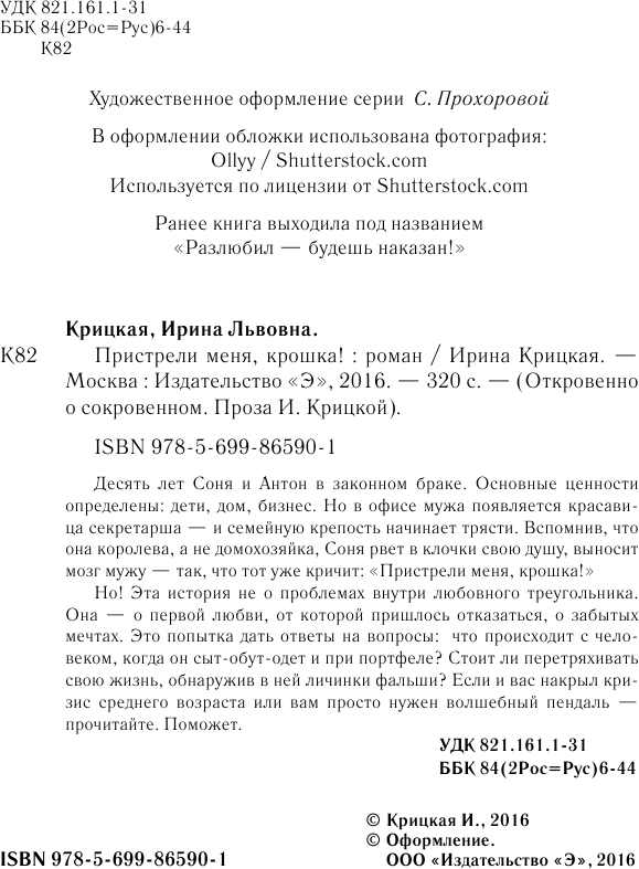 Пристрели меня крошка! Роман (Ирина Крицкая); Эксмо-Пресс, 2016
