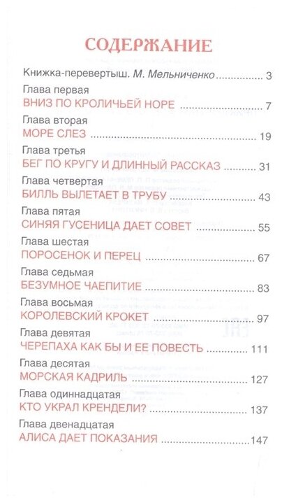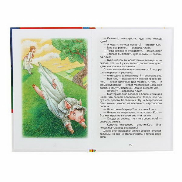 Удивительная история о приключениях девочки Алисы, которая попала в страну чудес, где все по волшебному и волшебству нет границ. Девочка Алиса несколько раз превращалась то в великана, то в мизерную девочку, то выростали ноги, то шея, все животные умеют говорить... А ещё в книге много цифр, велечин, наверное потому что автор являлся преподавателем математики в оксфордском университете. Книга хорошо оформлена, твёрдый переплет, формат небольшой, но произведение полное, не сокращено. Почти на каждом развороте имеются цветные иллюстрации очень красивые и добрые лица, в классическом варианте. Дети очень любят волшебные истории, поэтому обязательно им понравится история про девочку Алису.
