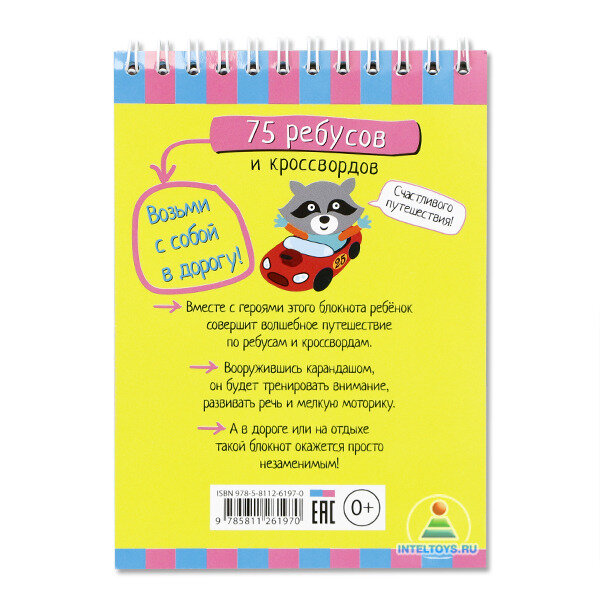 Открыв этот блокнот, ребёнок попадёт в волшебную страну ребусов и кроссвордов. Вооружившись карандашом, он будет выполнять задания на внимание, логику, развитие речи. А в дороге или на отдыхе такой блокнот окажется просто незаменим. Адресовано детям от 5 лет.
