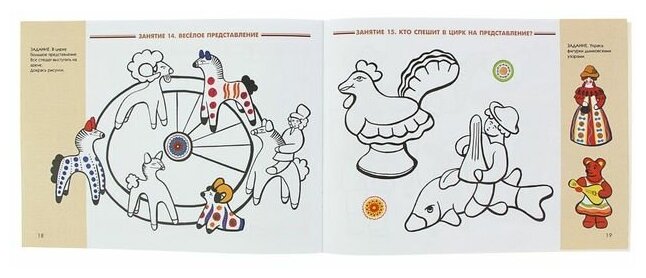 Красочный альбом познакомит ребенка с искусством дымковской игрушки. Пособие содержит цикл занятий с игровыми, подробно иллюстрированными заданиями для детей и методическими рекомендациями для педагогов и родителей.