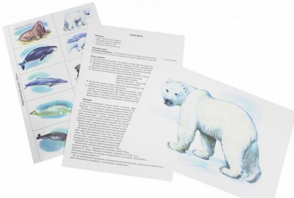 Карты - листы А4 упакованы в папку, листы плотные, изображения яркие, на каждом листе на обратной стороне вариант занятия + информация о животном. Есть лото с этими животными, хорошо для подведения итога по занятиям. Подходит как для индивидуальных занятий дома, так и в саду или студии развития. Работаю логопедом - психологом, сама являюсь мамой - покупкой довольна, соответствует цена - качество! Спасибо Лабиринту!