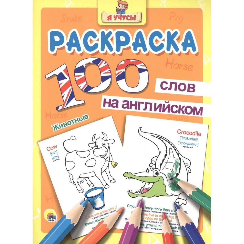 Раскраска. 100 слов на английском. Животные (Грецкая А. (ред.)); Проф-Пресс, 2016