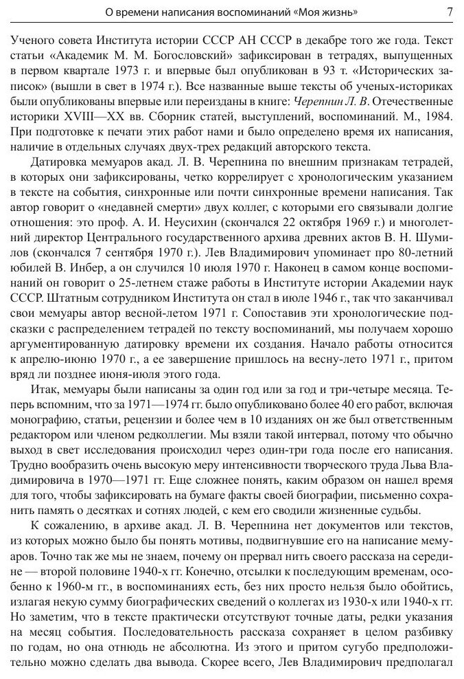 Публикуемые воспоминания академика Льва Владимировича Черепнина, историка с мировым именем, авторитетнейшего специалиста по средневековой Руси, охватывают почти полстолетия жизни страны и общества. Мемуары вместили в себя факты его биографии в потоке событий Первой мировой войны, Октябрьской революции и Гражданской войны в России, периода НЭПа и первых сталинских репрессий, Великой Отечественной войны. На рубеже 1970-х гг. автор осмысливал как в его личных судьбах студента, аспиранта, заключенного, научного сотрудника, доцента преломились сложнейшие, порой трагические этапы становления советской исторической науки.
