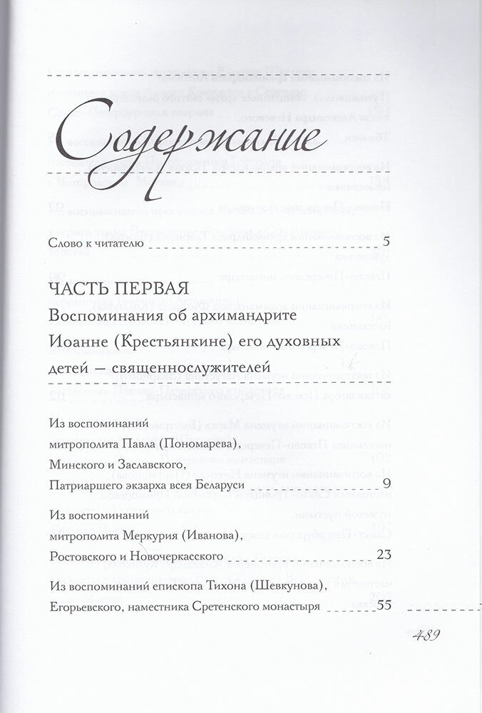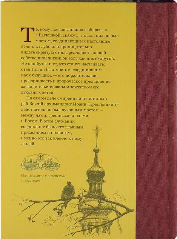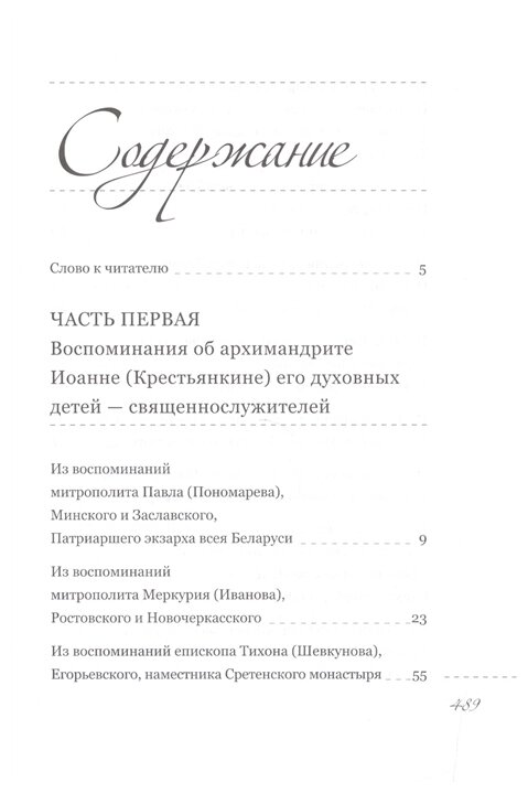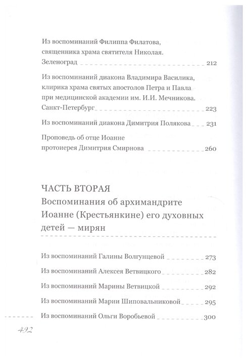 Книга содержит воспоминания об отце Иоанне: епископа Тихона (Шевкунова), Егорьевского, наместника Сретенского монастыря, митрополита Павла (Пономарева), Минского и Заславского, Патриаршего экзарха всея Беларуси, архимандрита Тихона (Секретарева), наместника Псково-Печерского монастыря и др.