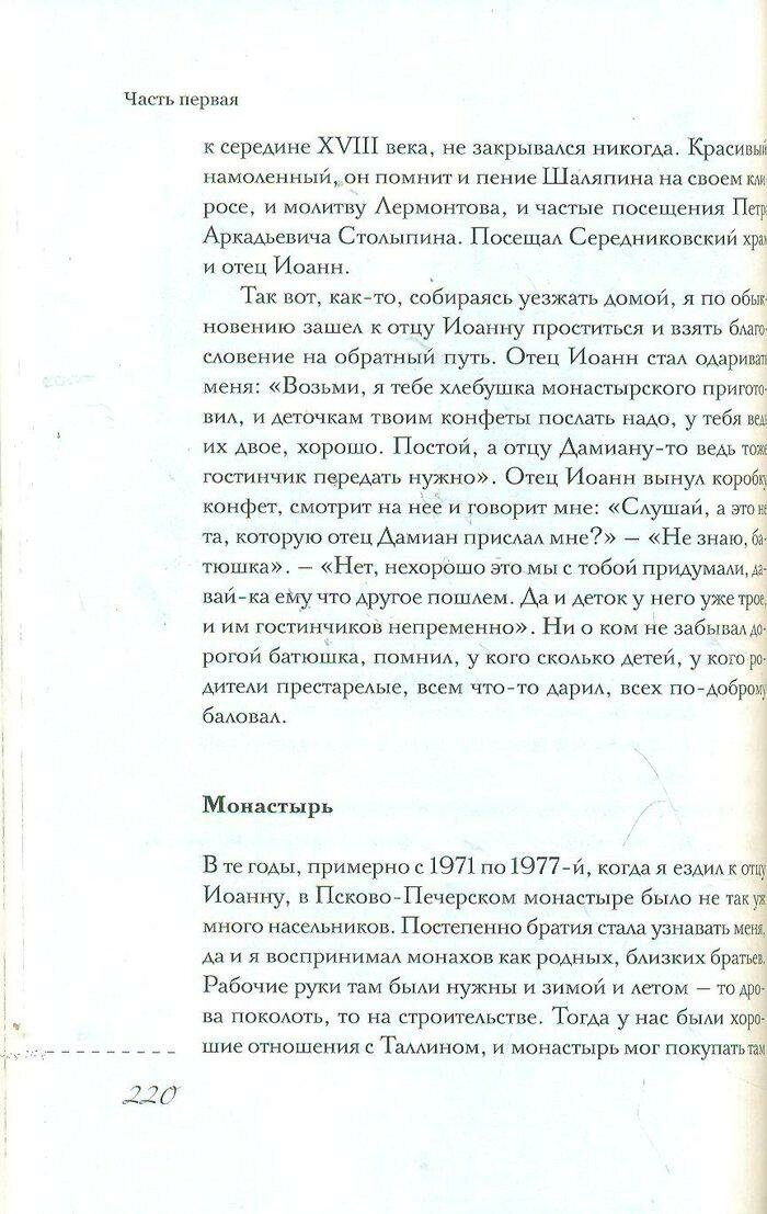 Читая эту книгу очень многое можно познать о праведности церковной жизни. Рекомендую эту книгу к прочтению. Потому что в этой книге настолько ярко описывается личность Иоанна Крестьянкина, что способно пробудить в читателях любовь к этому старцу, который отдал всего себя служению Богу и людям. Он был прекрасным батюшкой, который спас огромное количество человеческих душ. Книг о старцев Иоанне очень много, но эта книга как я думаю будет полезна в духовном плане каждому читателю.
