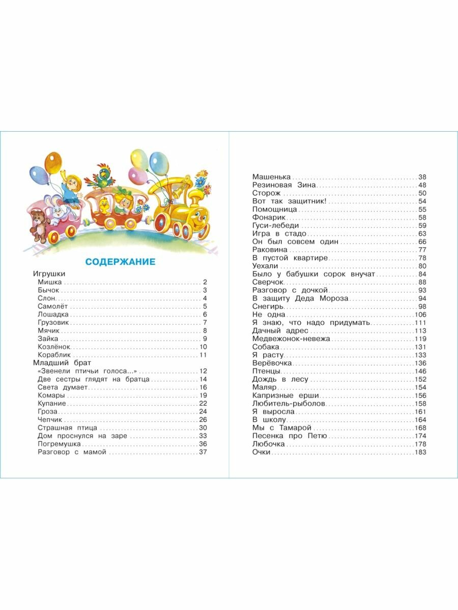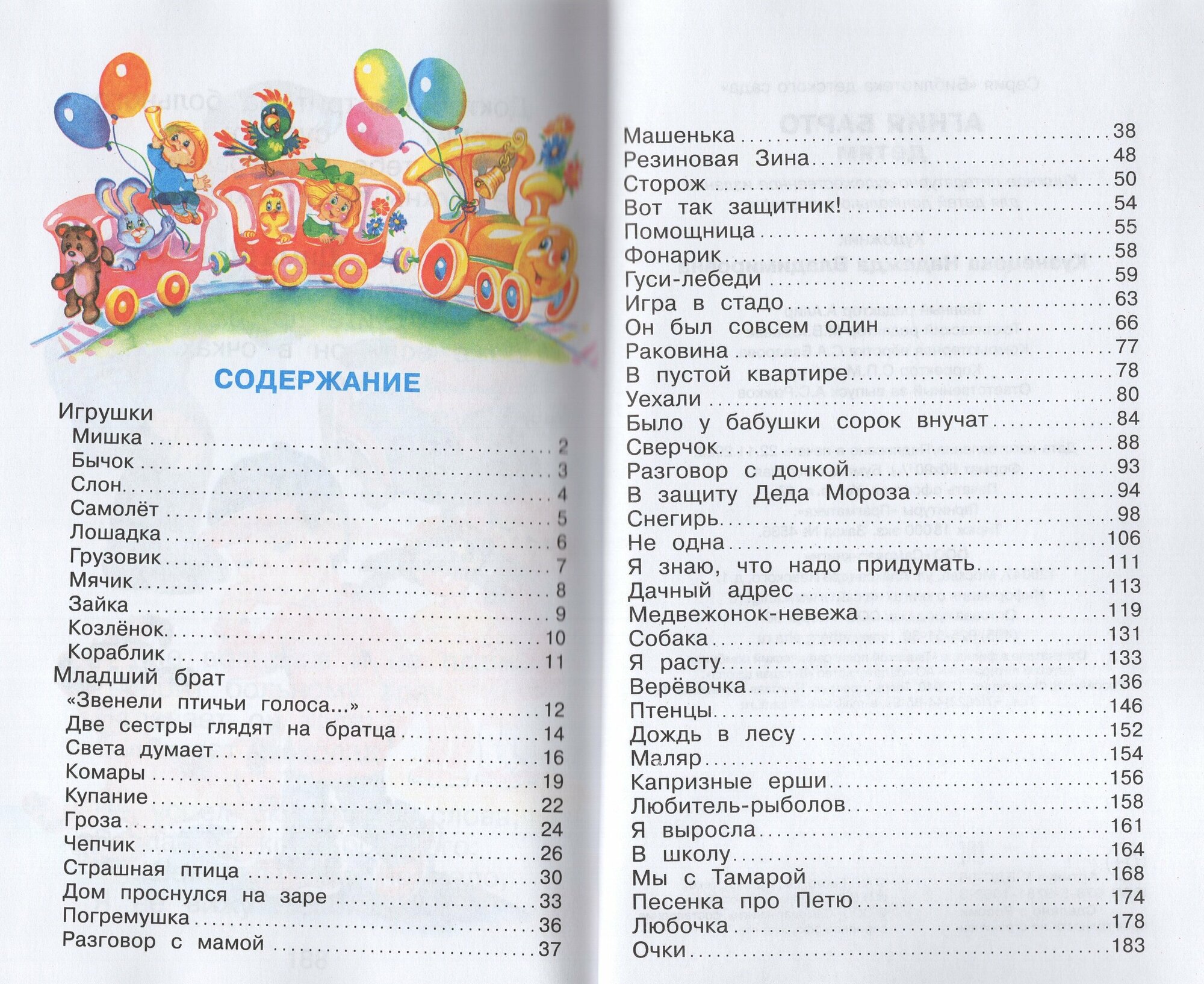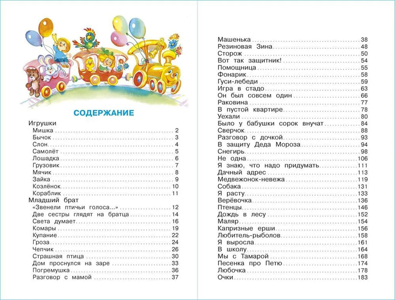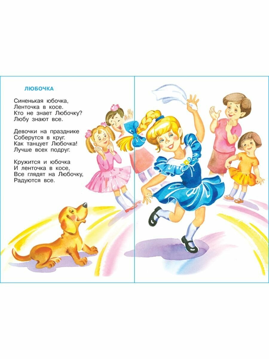 В первую очередь, хочется сказать,что очень хорошее издательство "Самовар".Книжка,знакомая почти всем с детства! Веселые стишки из разных сборников Барто("самолёт","мяч","бычок","веревочка" ,"любитель-рыболов" и т.д.). На каждой страничке книги яркие и красивые,добрые картинки! Бумага белая,качественная.(Художник Кузнецова Надежда Владимировна)Стихи разные по объему,подходят для деток разного возраста как для чтения,так и для заучивания.