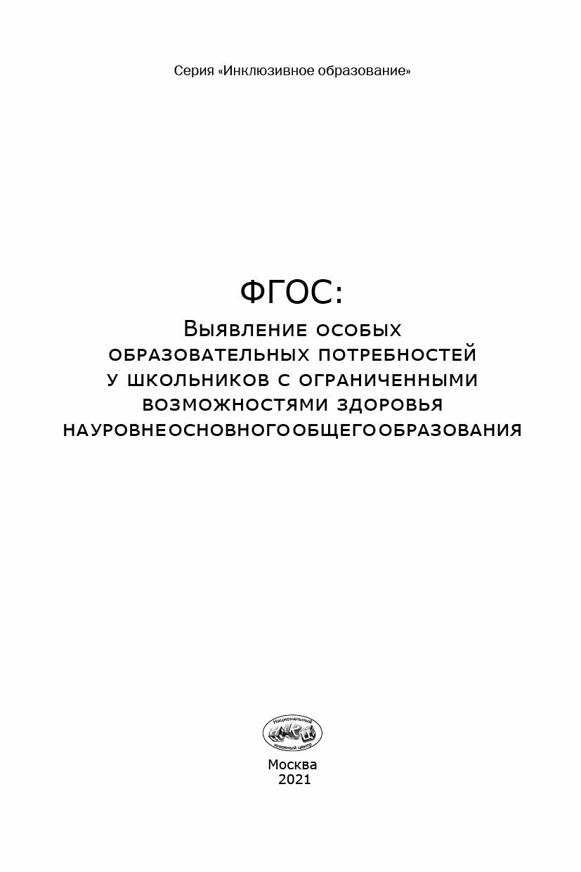 ФГОС: Выявление особых образовательных потребностей у школьников с ограниченными возможностями здоровья на уровне основного общего образования (Черкасова Е., Моргачева Е. (ред.)); Национальный книжный центр, 2016