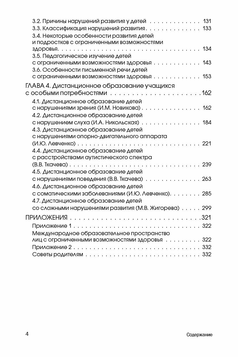 Книга содержит описание исследования о специальных образовательных потребностях детей с ограниченными возможностями здоровья (ОВЗ). Проанализированны особенности развития детей с речевыми, двигательными, сенсорными, эмоционально-волевыми нарушениями; представлены показания к дистанционному обучению детей с различными отклонениями в развитии, организация и специальные педагогические условия эффективного дистанционного обучения детей с ОВЗ; специфика работы с семьей ребенка, обучающегося дистанционно.