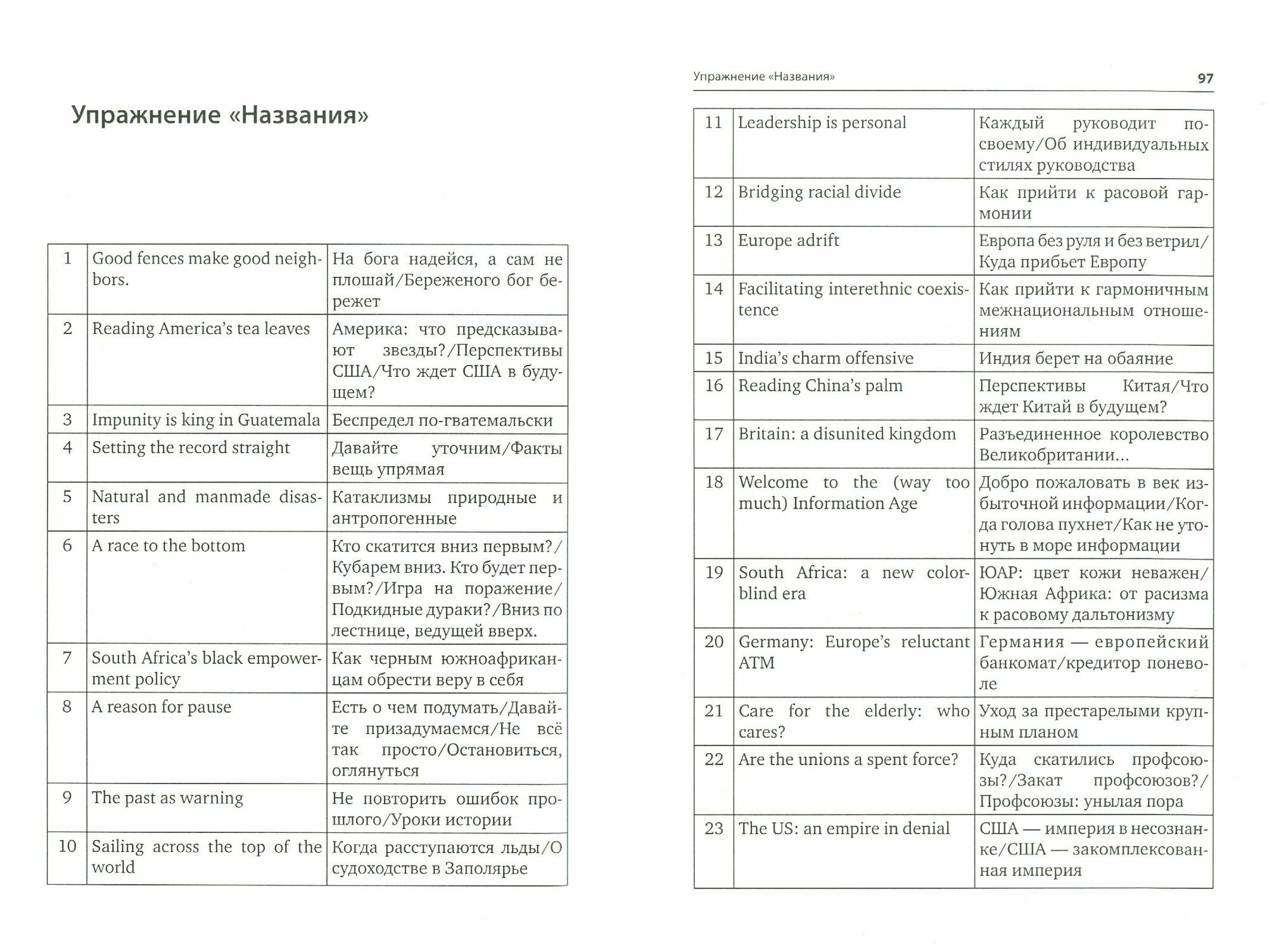 Авторы рассматривают более трудные случаи перевода сочетаний из 3 слов, фраз, требующих изменения порядка перевода частей предложений, необходимости замены слова оригинала контекстуальным эквивалентом с учетом аудитории, особенности перевода предложений, начинающихся причастными и деепричастными оборотами и сочетаний глагола и существительного. Полезно позаниматься и профессионалам.