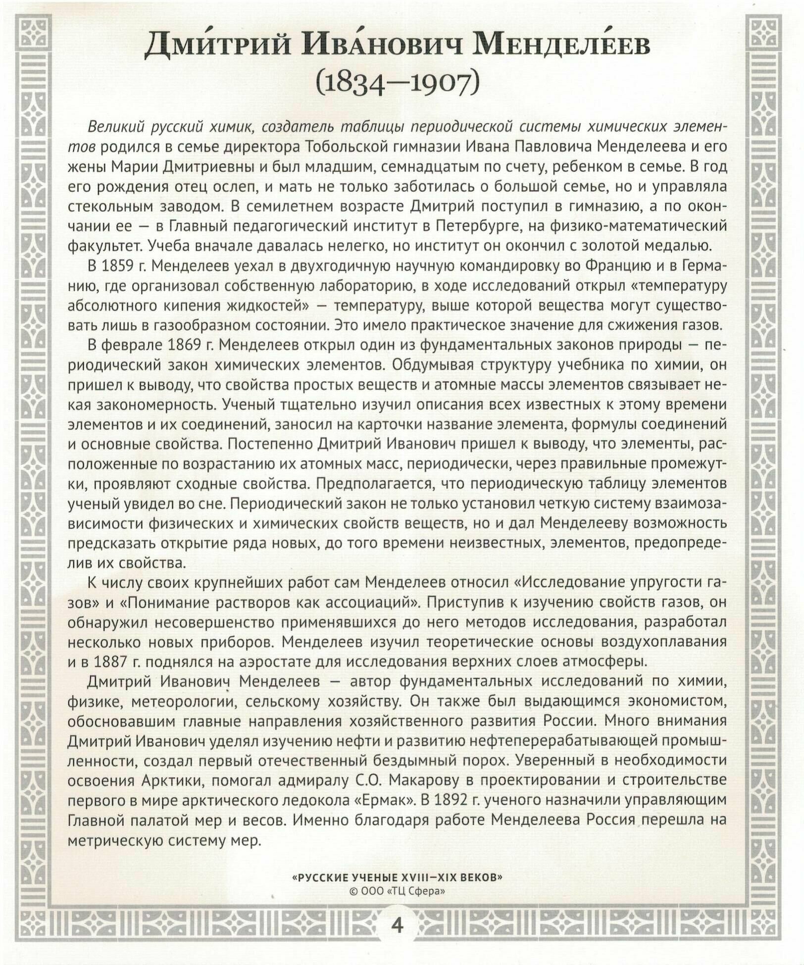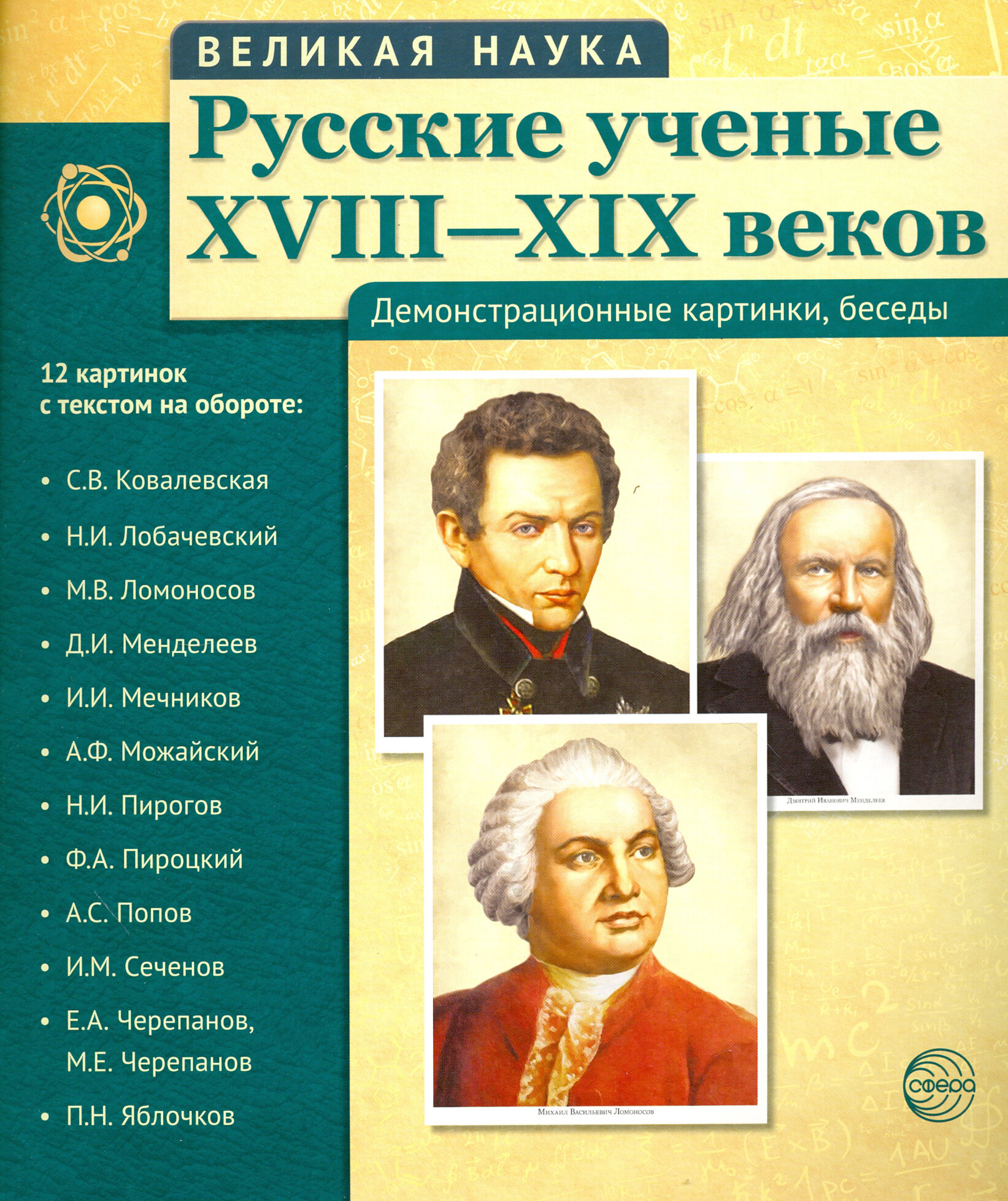 Русские ученые XVIII-XIX веков. Демонстрационные картинки беседы. 12 картинок с текстом на обороте (Цветкова Т.); Творческий центр Сфера Издательство, 2016
