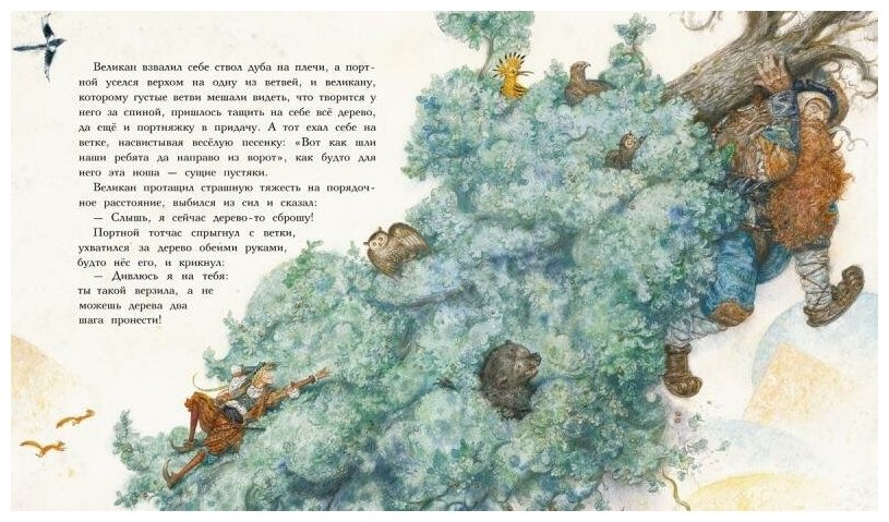 Антон Ломаев - художник очень разноплановый, кто собирает книги с его иллюстрациями, не дадут слукавить.) Эта мне показалась по стилю исполнения похожей на "Свинопаса", где присутствует множество миниатюрных, тщательно выписанных персонажей, не являющихся значимыми действующими лицами, служащих, по сути, фоном, на котором события и разворачиваются, оживляющих этот фон. В "Свинопасе" это были разномастные, очень индивидуальные и по-своему очаровательные свинки, здесь - мухи, а кое-где и люди, очень похожие на этих мух боевым духом и размерами.
