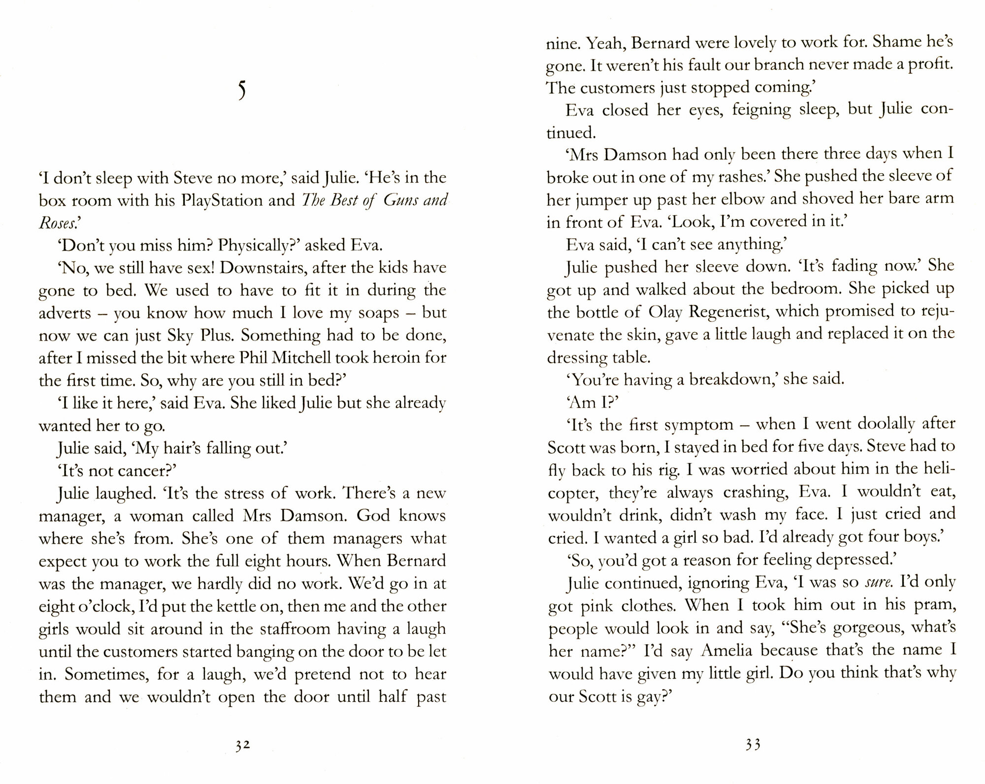 The day her twins leave home, Eva climbs into bed and stays there. For seventeen years she's wanted to yell at the world, 'Stop! I want to get off'. Finally, this is her chance.
