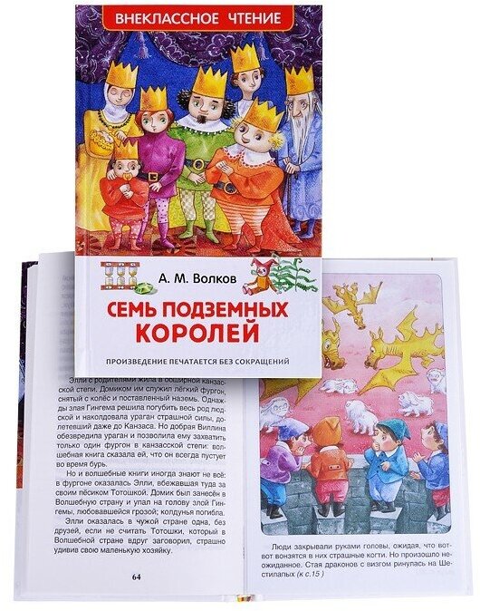 Здравствуйте! "Семь подземных королей" с детства моя самая любимая история продолжения "Изумрудного города". Сейчас очень много вариантов издания этой книги одновременно стоят на полках Буквоеда. Мне нужна была книга, чтобы завершить комплект книг Волкова про "Изумрудный город" для домашней библиотеки. Именно эта, серии "Внеклассное чтение" мне очень понравилась. При низкой цене за книгу она очень хорошо издана: удобный формат, можно легко брать с собой на прогулки, хорошая белая бумага и достаточно крупный шрифт для самостоятельного чтения младших школьников. Особенно хороши иллюстрации: очень милые, цветные, такими я героев и представляю, и именно эти картинки повлияли на мой окончательный выбор книги.