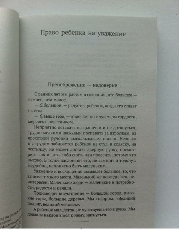 Януш Корчак, выдающийся детский педагог и гуманист, врач и общественный деятель. Даже сложно представить, что книга была написана в 20 годы прошлого столетия, настолько его знание и понимание вопросов, касающихся воспитания детей, глубоко и всеобъемлюще. Каждое слово в этой книге пронизано любовью и уважением к детям. От текста веет добротой и мудростью этого необыкновенного человека, которой он в деликатной и ненавязчивой форме старается научить родителей. А когда думаешь о том, что этот великий человек мог спастись, но предпочел разделить участь своих воспитанников, понимаешь, что цена его слов, его жизнь. К сожалению, чтобы книга попала в руки родителям, нужно чтобы они хотели научиться любить ребенка, а не относились к той многочисленной категории людей, которые считают, что родителем становятся как только родил ребенка. Книгу нужно не просто читать, а проживать ее, взрослеть с ней, и доверять ей, но результат того стоит. Прочитав ее, вы в первую очередь станете больше понимать себя, и как результат, перед вами предстанет прекрасный мир любви к ребенку.