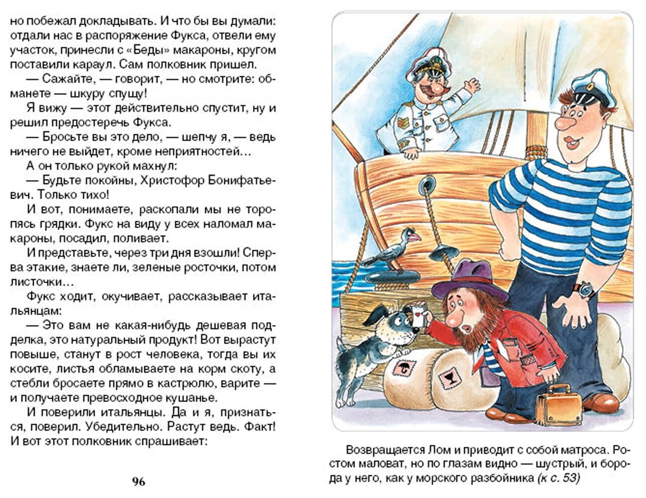 В детстве безумно нравилось следить за приключениями Капитана Врунгеля и его команды, а также читать про смешных иностранных персонажей, итальянцев, немцев. Книжка удивительно бойкая,смешная, жизнерадостная, читается на одном дыхании. Книга не может оставить практически ни кого равнодушным. Сейчас появилась возможность перечитать эту с детства любимую книгу вместе со своим ребенком. Читали с огромным удовольствием, смеялись от души. Советую всем, кто хочет отвлечься от грустных серых будней окунуться в мир детства и получить самые настоящие, искренние, светлые чувства. Идеальная книга для чтения детей.