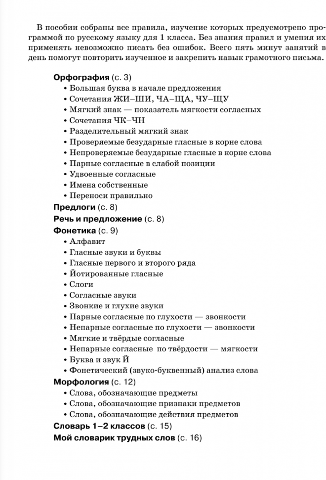 В пособии собраны все правила, необходимые для автоматического грамотного письма. Без знания этой теории невозможно написать без ошибок различные проверочные работы. В пособие вошли основные правила, представленные во всех федеральных учебниках по русскому языку для 1-го класса.
