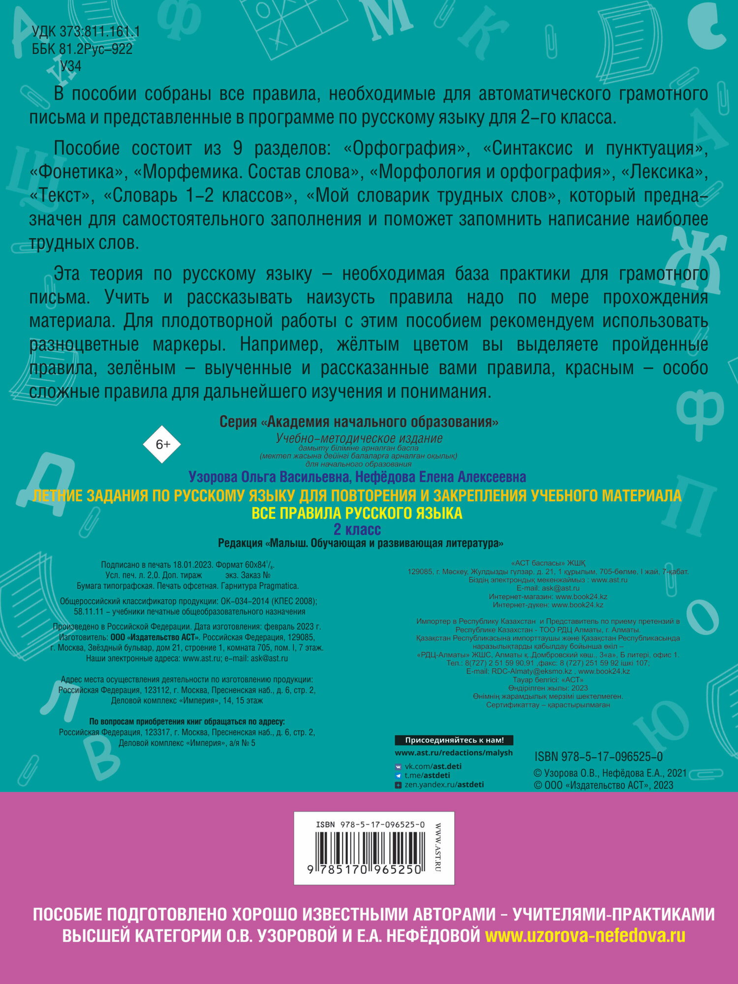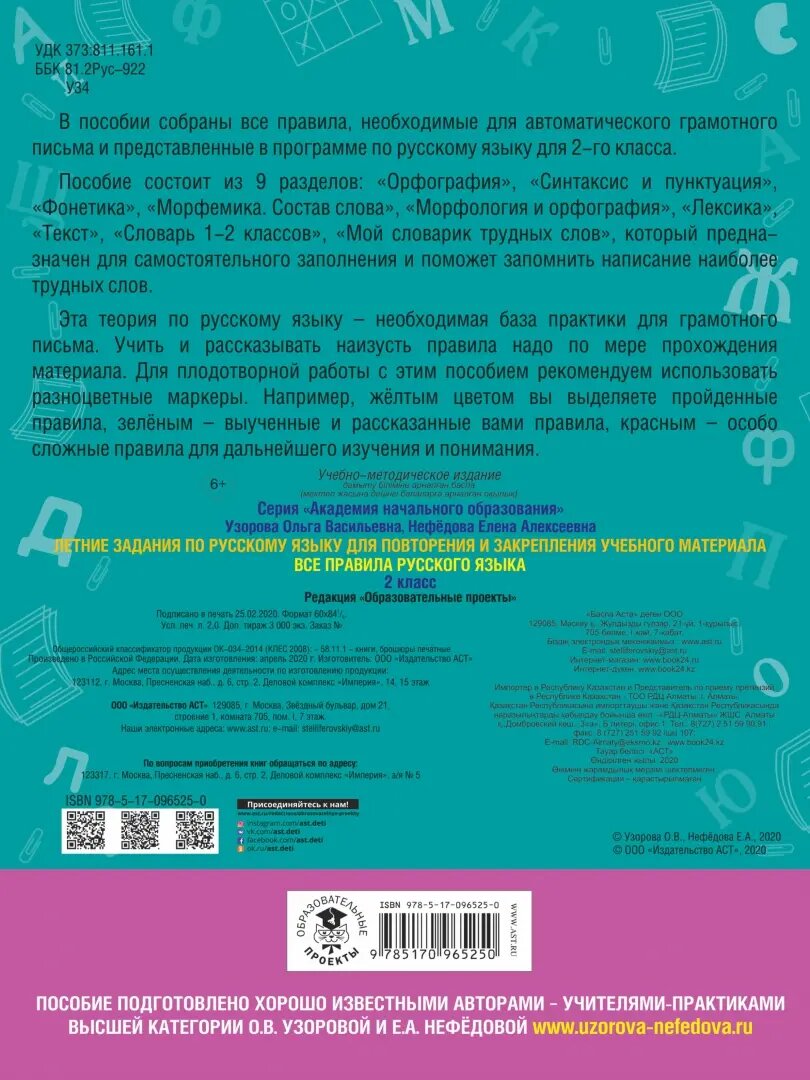 Летние занятия по русскому языку для повторения и закрепления учебного материала. 2 класс. Все правила русского языка (Елена Алексеевна Нефедова, Ольга Васильевна Узорова); АСТ, 2023
