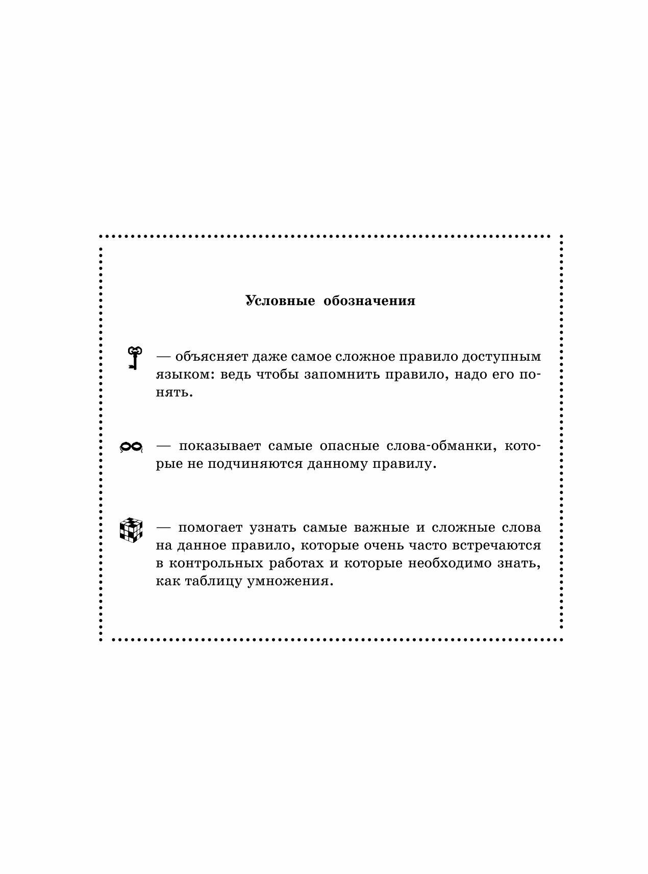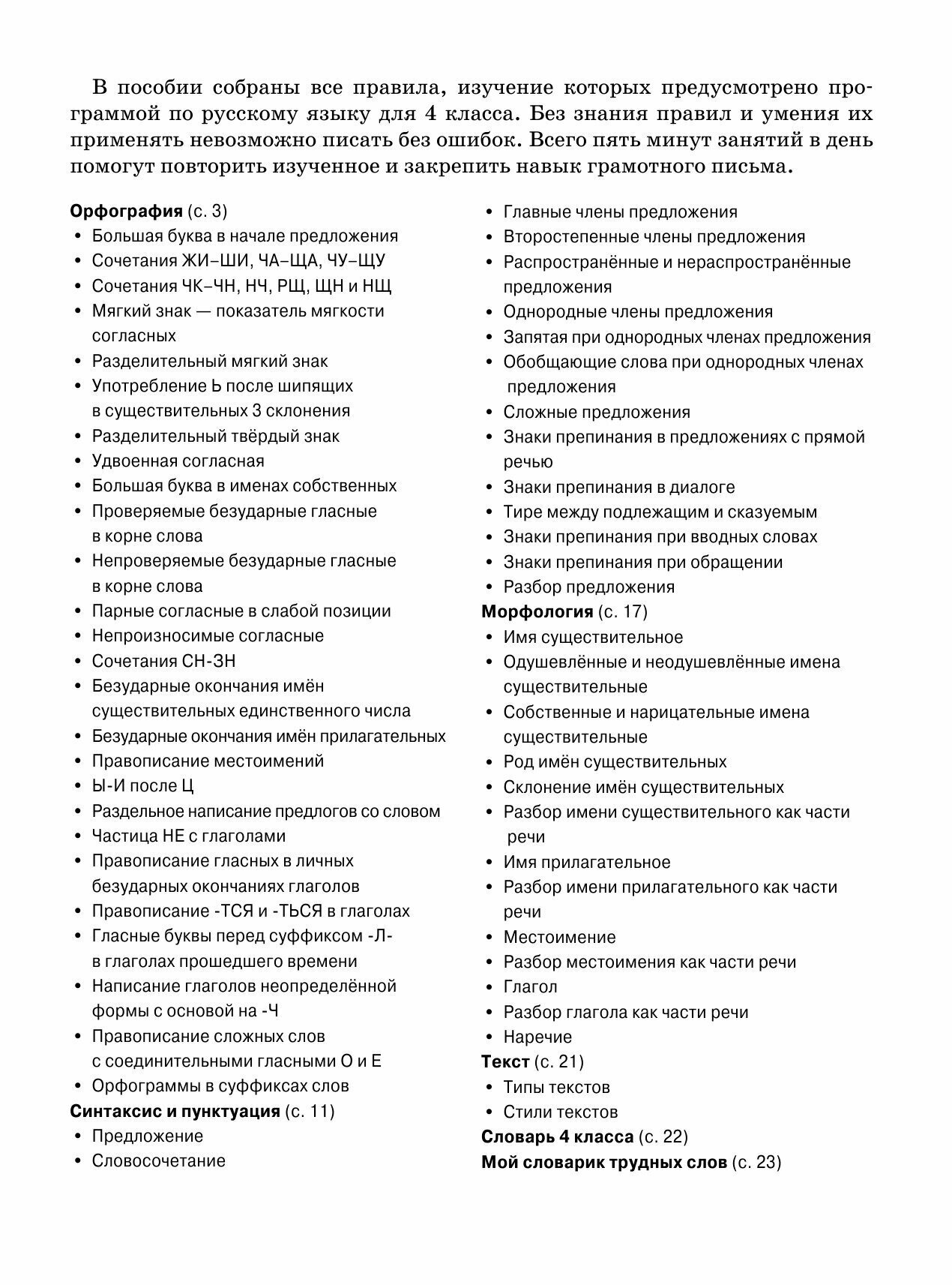 В пособии собраны все правила, необходимые для автоматического грамотного письма. Без знания этой теории невозможно написать без ошибок различные проверочные работы. В пособие вошли основные правила, представленные во всех федеральных учебниках по русскому языку для 4-го класса.